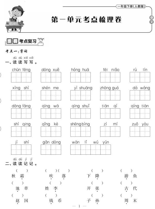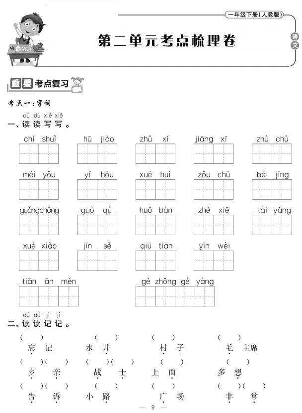 统编语文一年级(下册)《考点梳理卷》,可下载打印! 领取电子版请拉到文末 领取电子版请拉到文末 领取电子版请拉到文末 (点击图片可查看高清版) (因篇幅有限,仅展示前两个单元) (仅展示部分内容,领取全部请拉至文末) ——END—— # 免费领取更多学习资料 1.扫描或搜索公众号“读书和远方”关注! 下载完整版方式 1.▲扫码关注 2.后台回复:下册考点梳理 注:如果您在微信以外的平台打开此文 将此文转发至微信,然后长按识别二维码 领取更多资料点阅读原文!点亮 在看◢