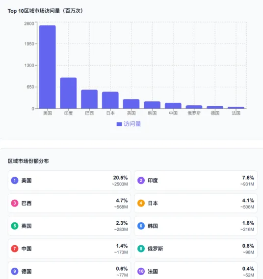 🔹 巴西:升至4.7%,拉美增长最快市场,创作类工具爆发。