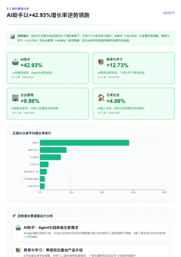 🔹 AI助手赛道:平均增长率高达 +42.93%,Agent化趋势正在催生新需求。