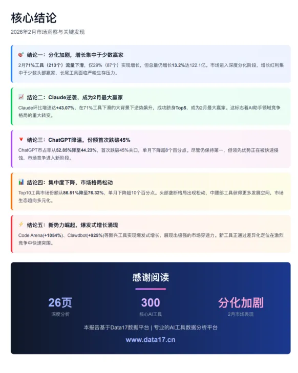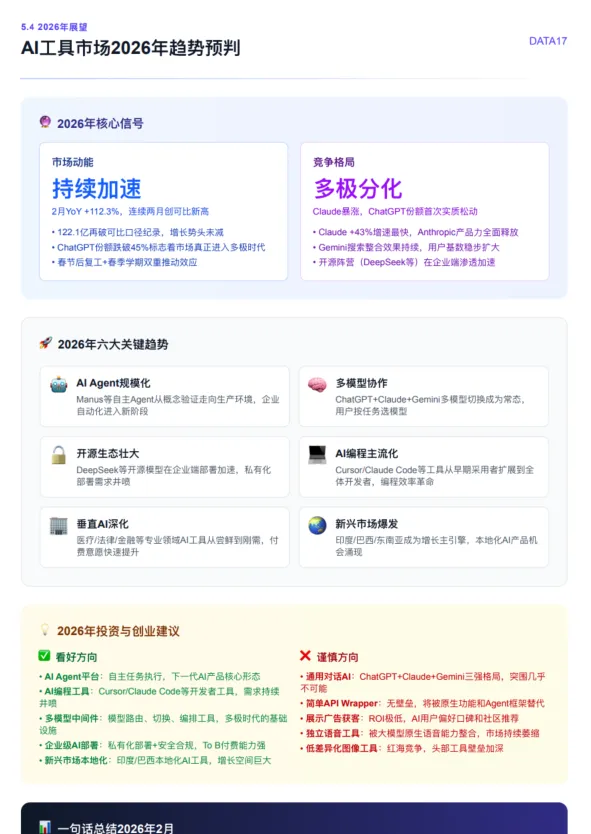 《2026年2月全球AI工具趋势洞察报告》:AI市场大洗牌