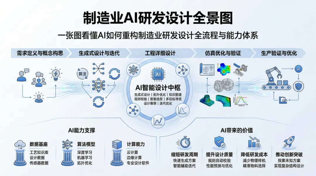 所以,制造业研发设计应用AI,真正值得关注的,不是“有没有上AI”,而是AI有没有进入研发设计整个工作流程的主链路,开始改写效率、质量和协同方式。