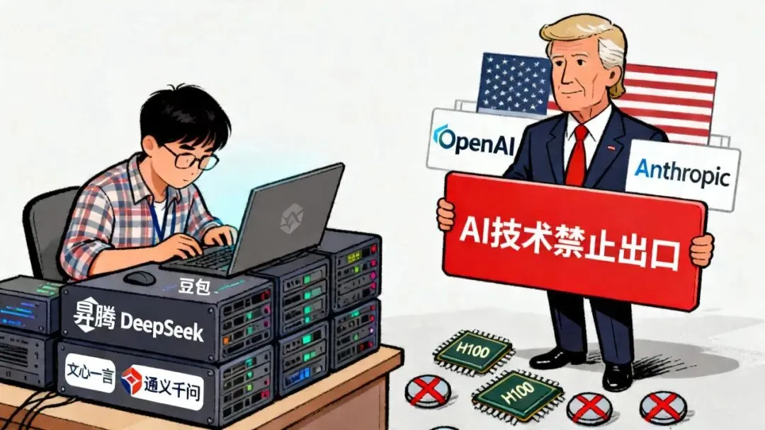 既然是竞赛,就少不了有人下绊子。美国这几年的封锁,几乎把「老子就是不想让你玩」写在脸上了: 先是禁了A100、H100高端AI芯片,后来连专门给中国定制的降配版H800、A800也不让卖了,2026年最新的管制政策更狠,甚至要禁止美国企业给中国大模型公司提供底层技术支持,连美国资本投资中国AI企业都要层层审查,说白了就是想把我们堵在AI工业化的大门外面[6]。 《纽约时报》4月份的报道都直接说了,特朗普政府甚至在考虑把所有和大模型训练相关的技术全列入出口管制清单,就是怕我们追上[6]。