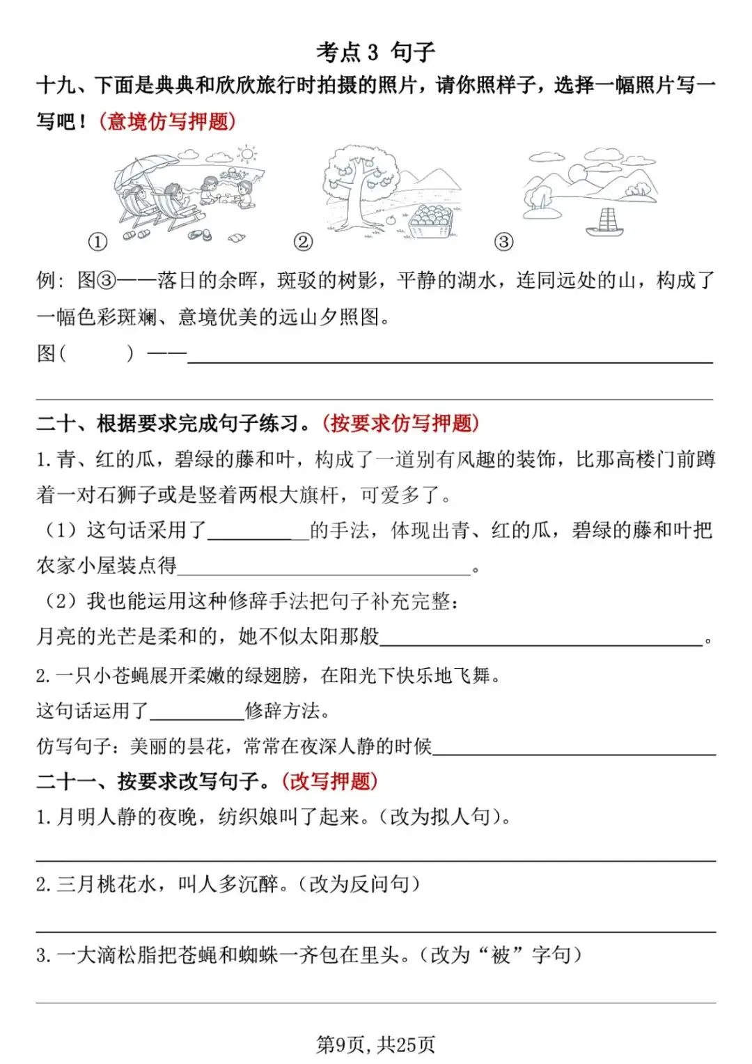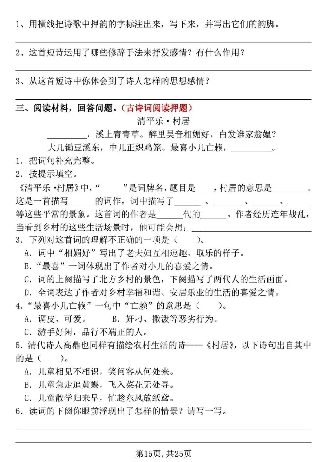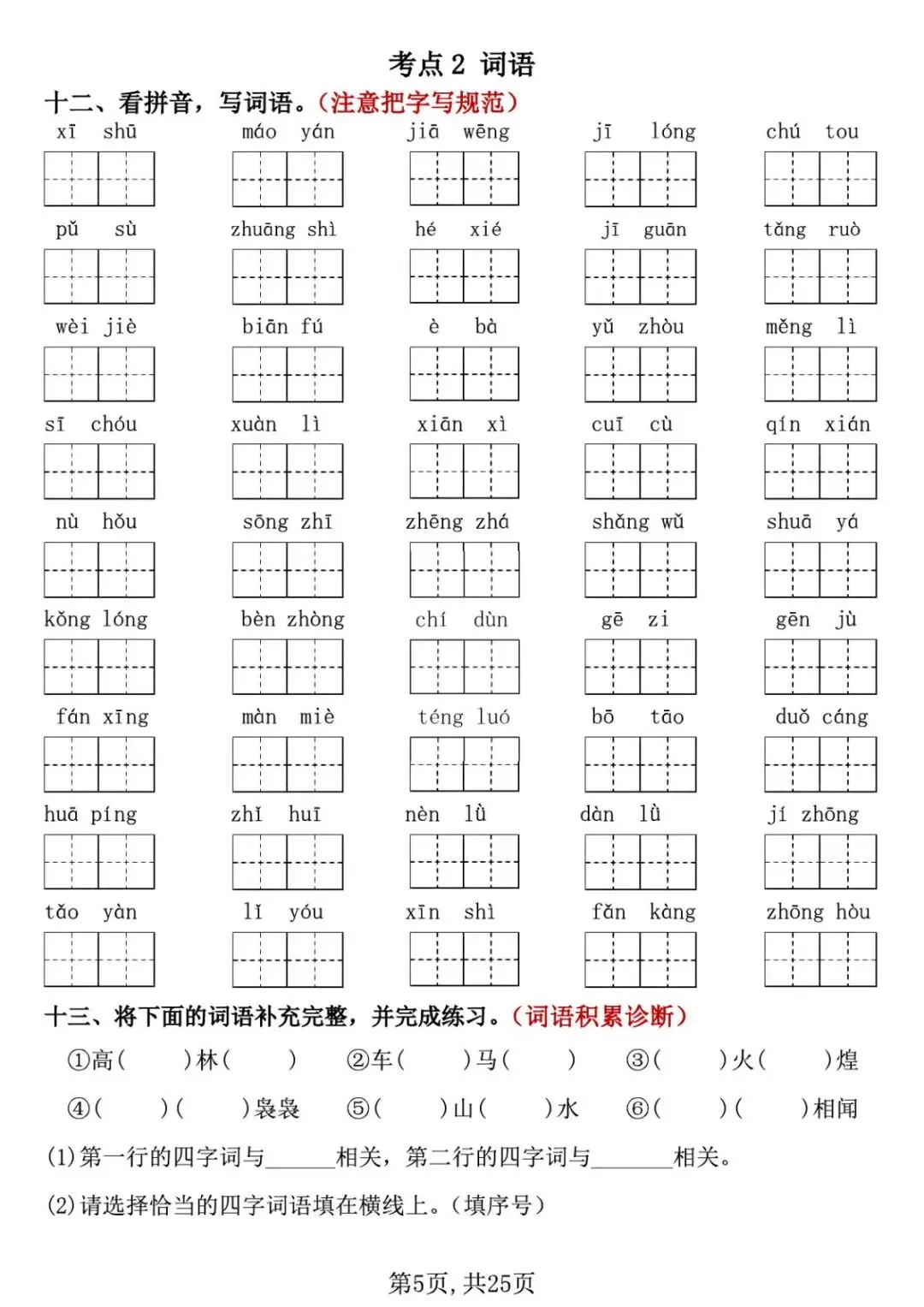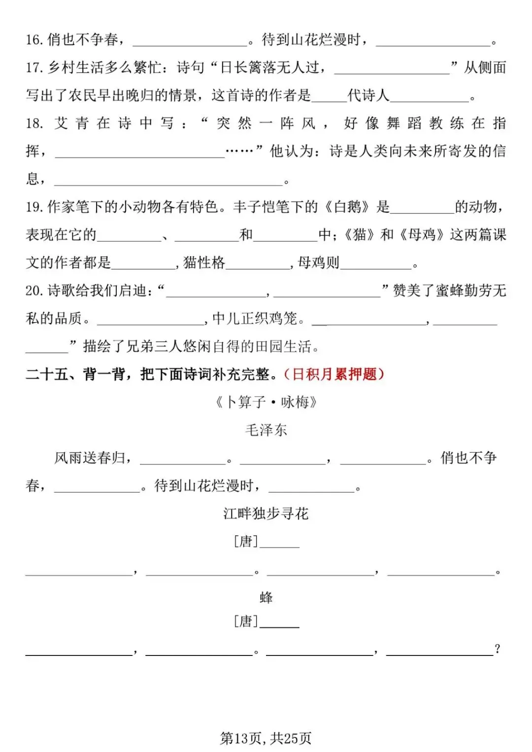 26新四年级下册语文《期中复习专项押题版》,附有答案,共25页,PDF,高清可打印.