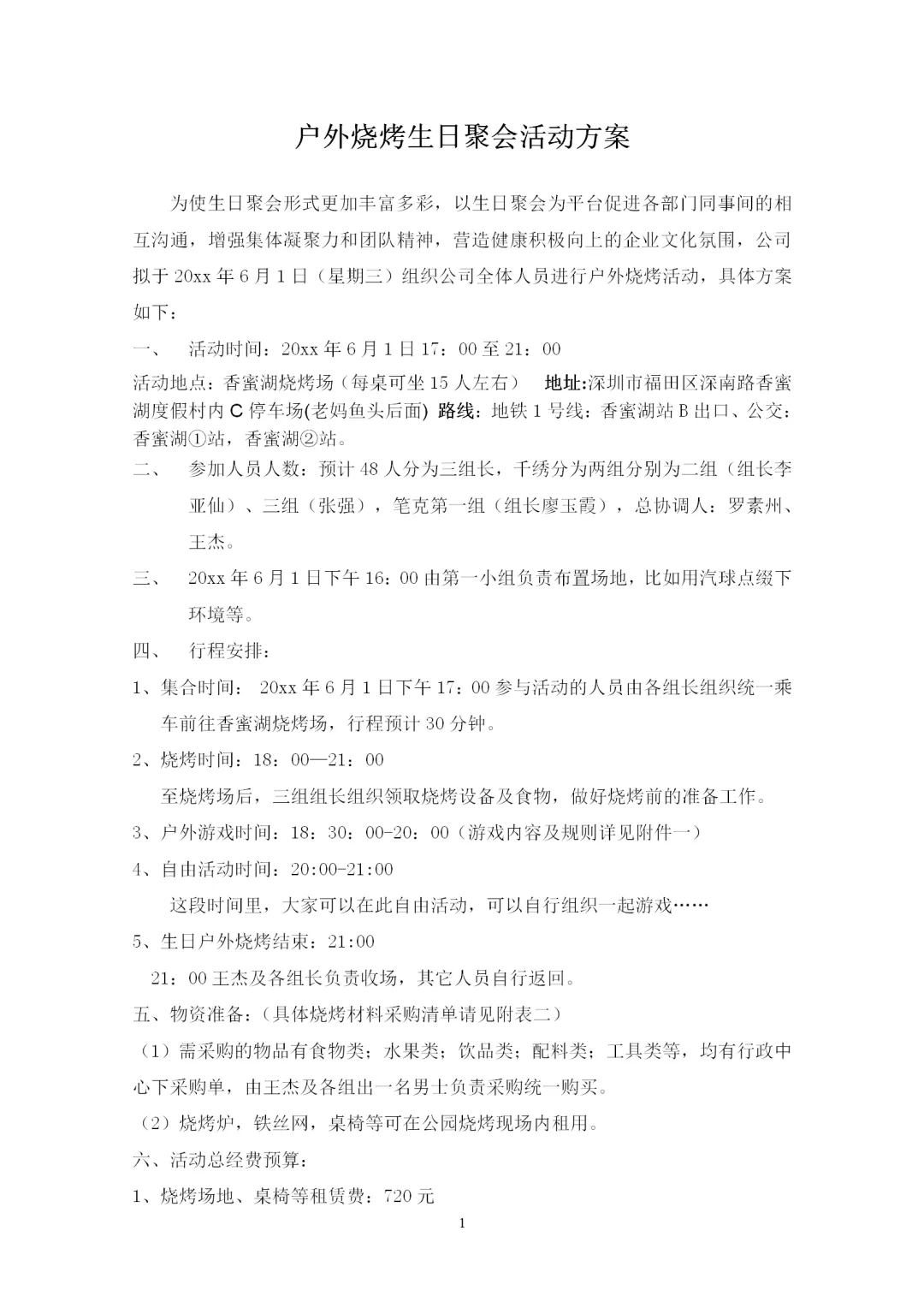 户外烧烤、生日会策划方案.word