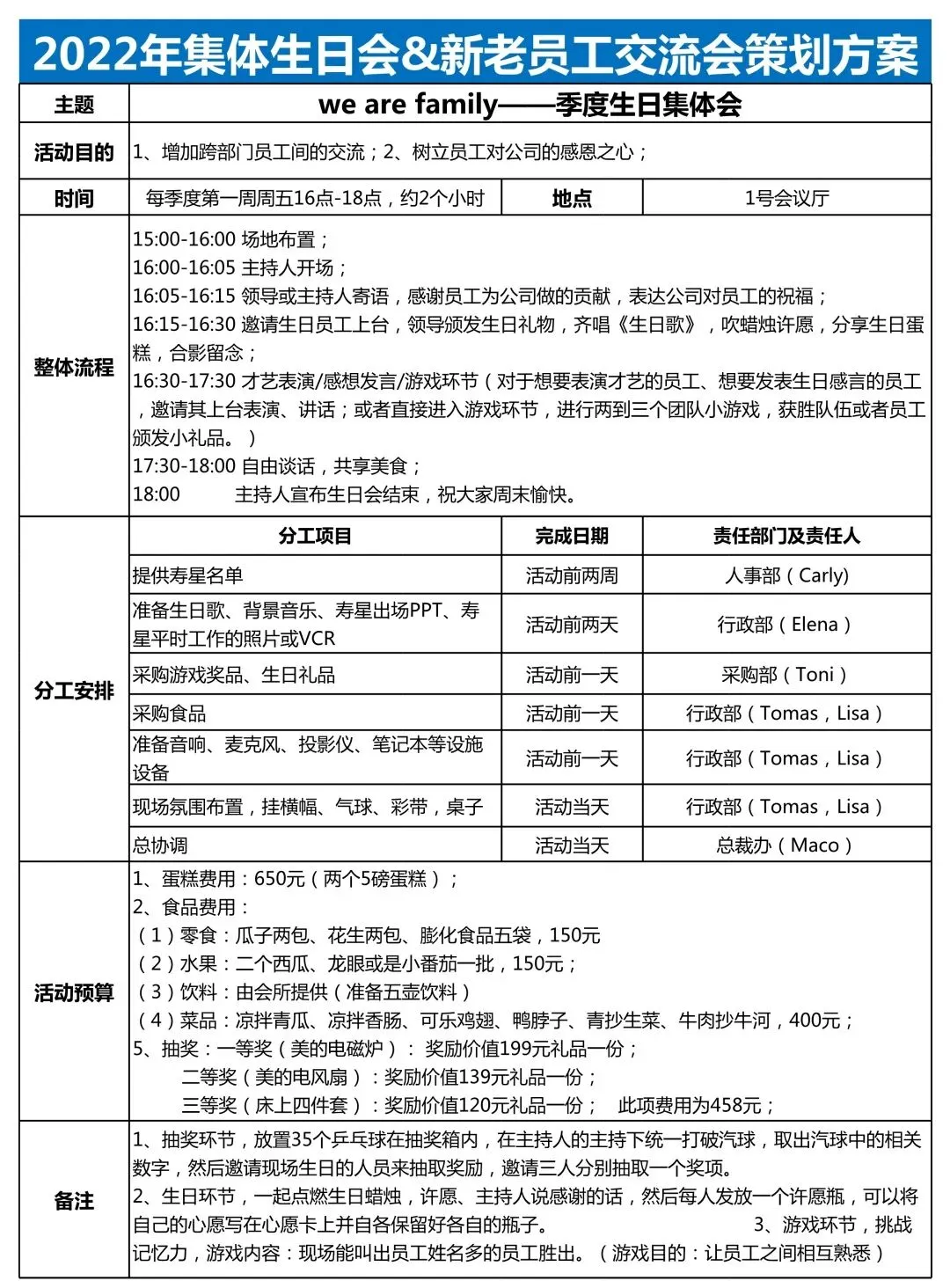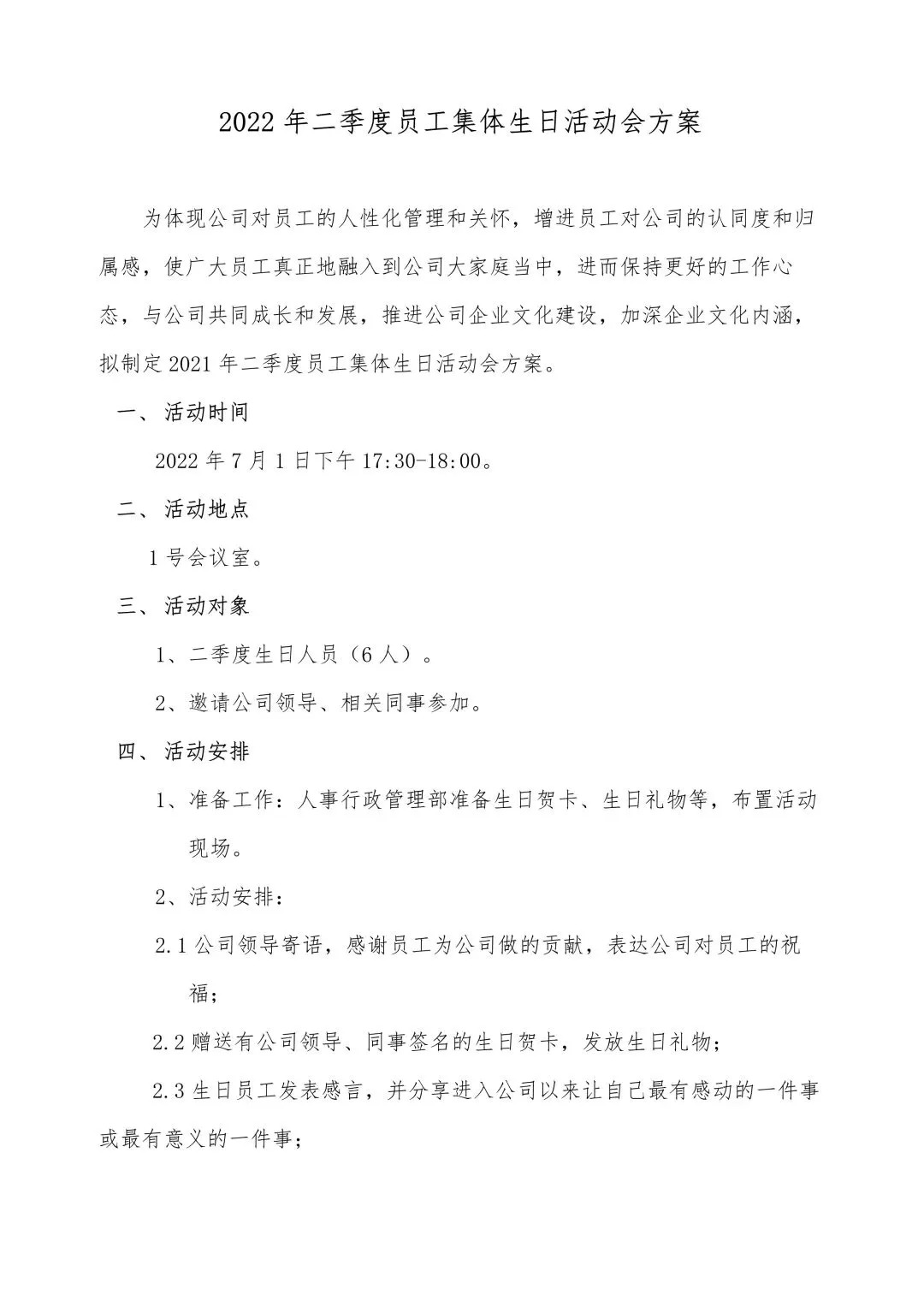 ▼ 2022年计提生日会&新老员工交流会策划方案