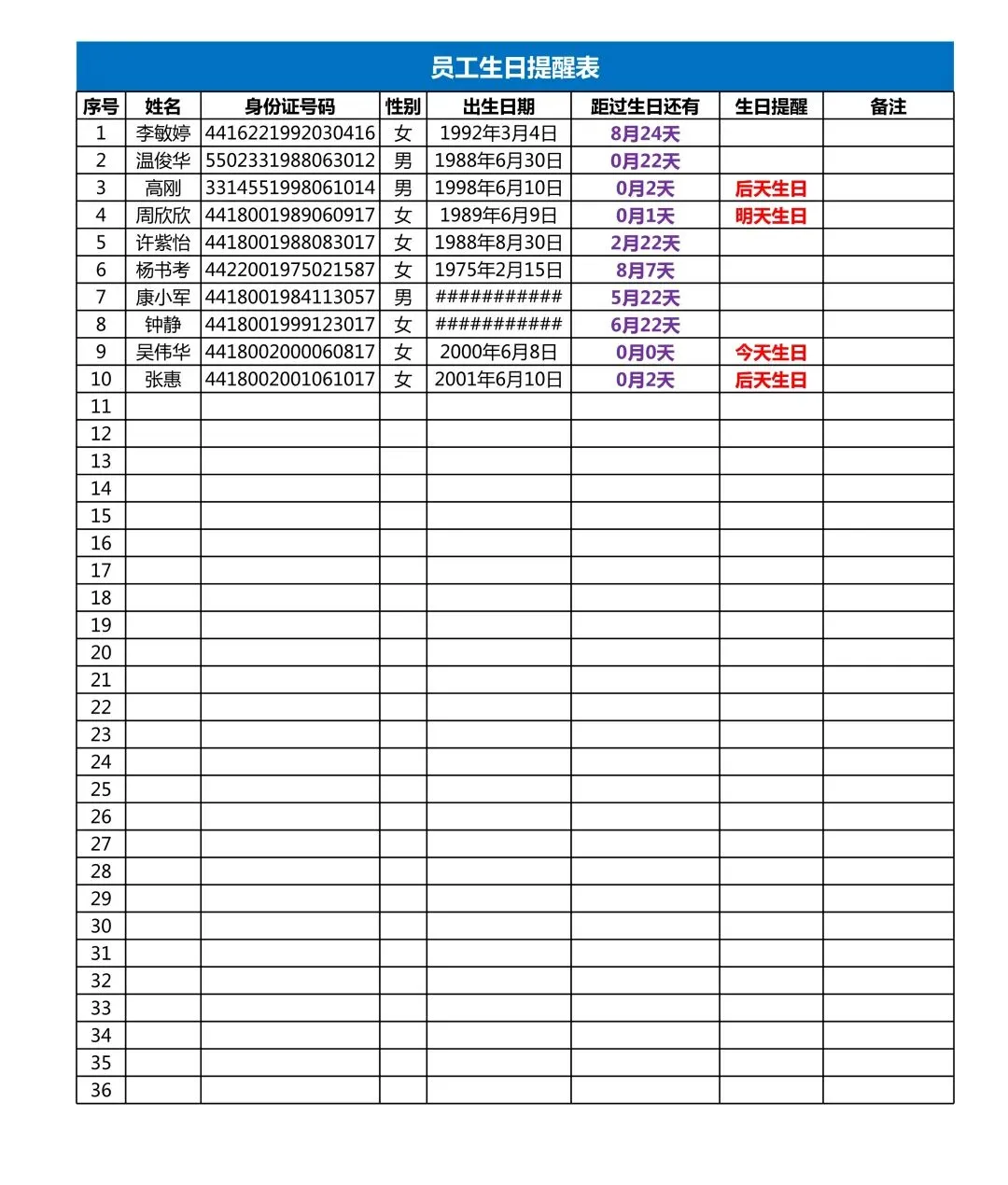 ▼ 员工生日自动提醒表.xls