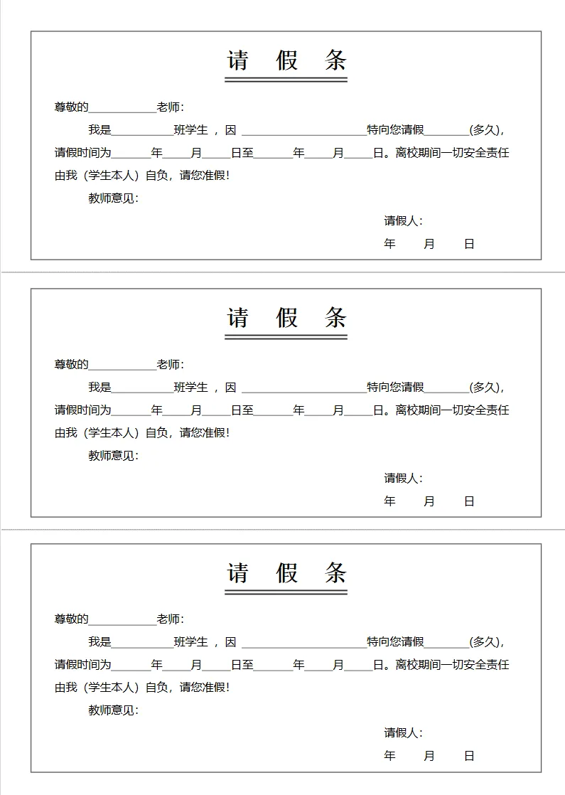 必备请假条 Word 模板|可编辑可打印,省心又规范 15套请假条模板(可编辑打印)公司/学校/个人均可使用哦! 下载链接 「15套请假条模板下载」,点击链接复制整段内容,打开「夸克APP」即获取。链接: https://pan.quark.cn/s/501ac794f8eb 01 部分预览 复制搜一