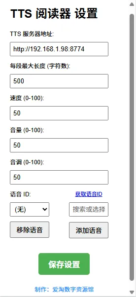 1.增加“在线”自动获取声音 ID 列表功能,支持关键词搜索过滤。不用再访问语音列表,手动添加发音人,使语音选择更加便捷;