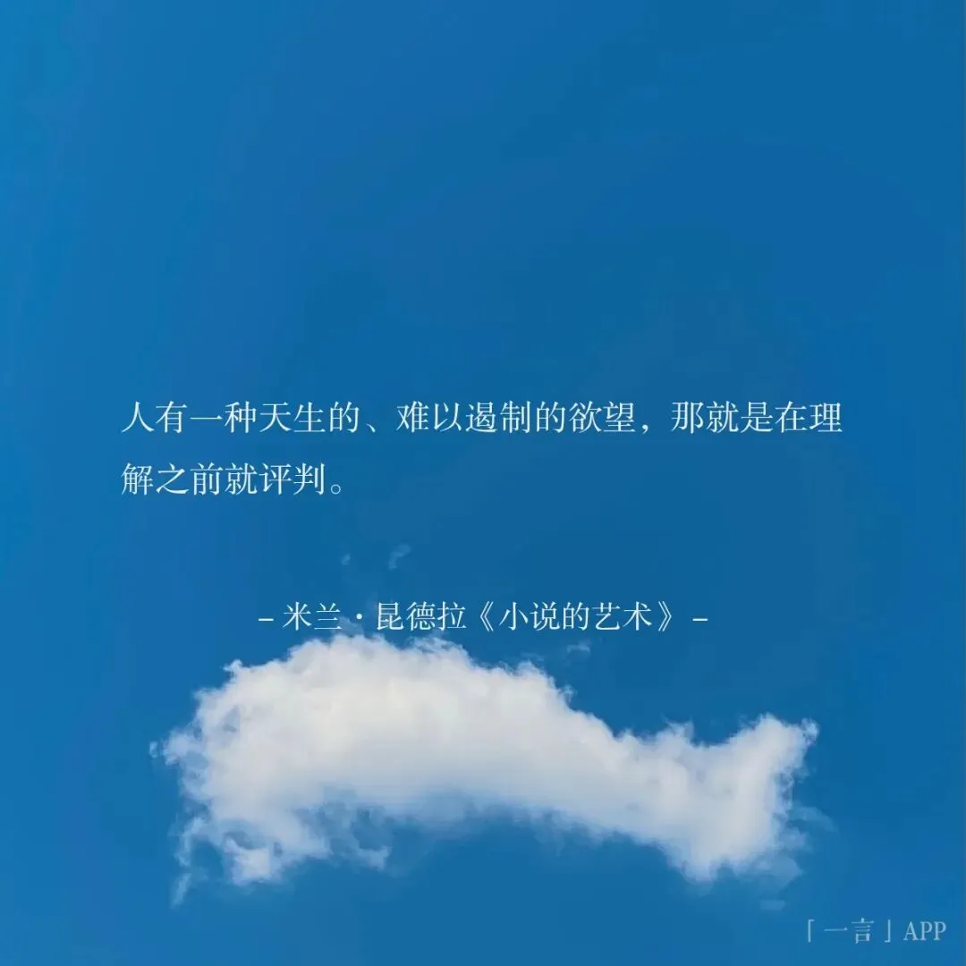 ●昆德拉这句话,戳穿了人类思维中一种顽固的认知惰性:我们总是不自觉地跳过观察、悬置与理解的过程,急切地落入“评判”这一看似稳固的、能带来掌控感的位置。这种欲望之所以“难以遏制”,是因为评判能迅速简化世界的复杂性,用道德或理性的标签覆盖事物本身的暧昧与多重可能,从而缓解我们在未知与不确定面前的焦虑。昆德拉借此在为小说精神辩护:小说的使命恰恰是反抗这种欲望,它邀请我们停留在理解的过程之中,保持对定论的怀疑,并在延迟的判断里,重新发现生活的模糊与人的真实。