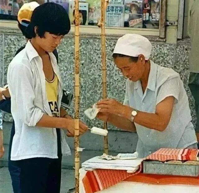 夏天的那种冰棍摊谁见过都说一声香,图里这个奶奶手速飞快,冰砖雪糕一刀切得赛过剪纸,五分钱一根豆冰棍,奶油味的要多花一毛,下午放学队排到路口,我爸打趣说:这冰棍掉了都能捡回来接着吃,小时候追着吆喝声撒腿跑出去,天大的热都能散。