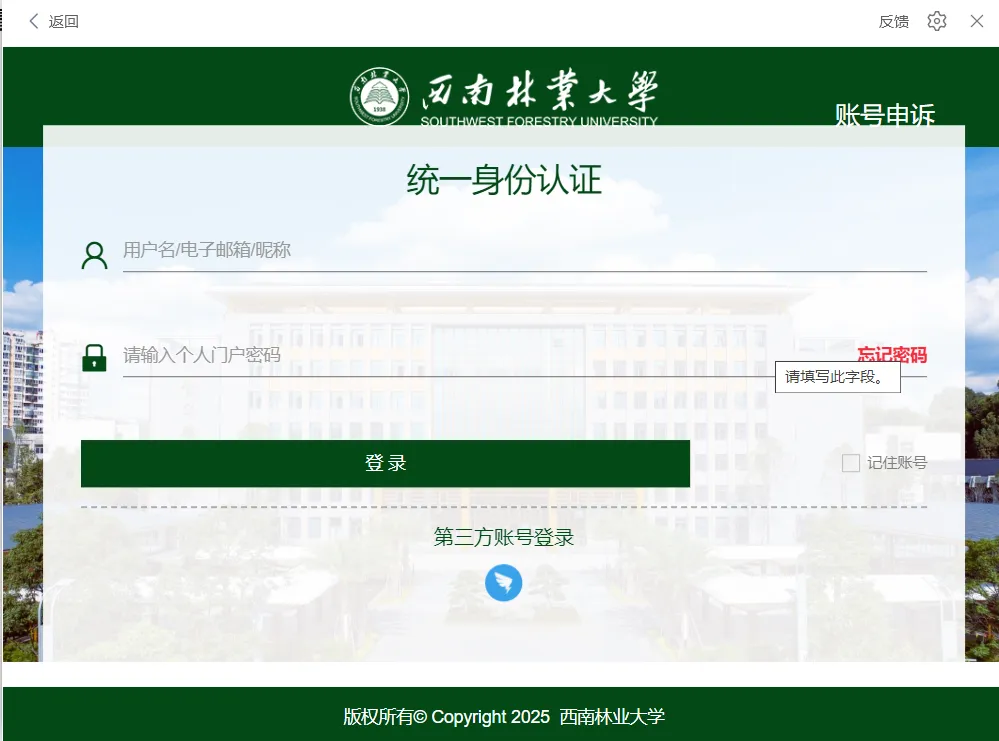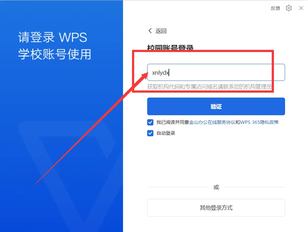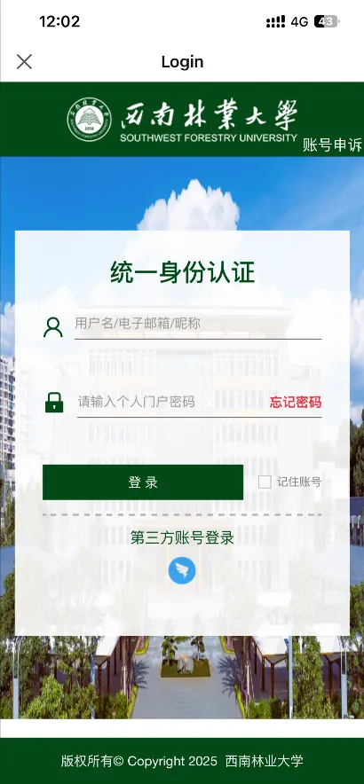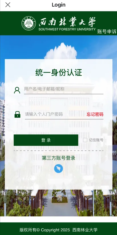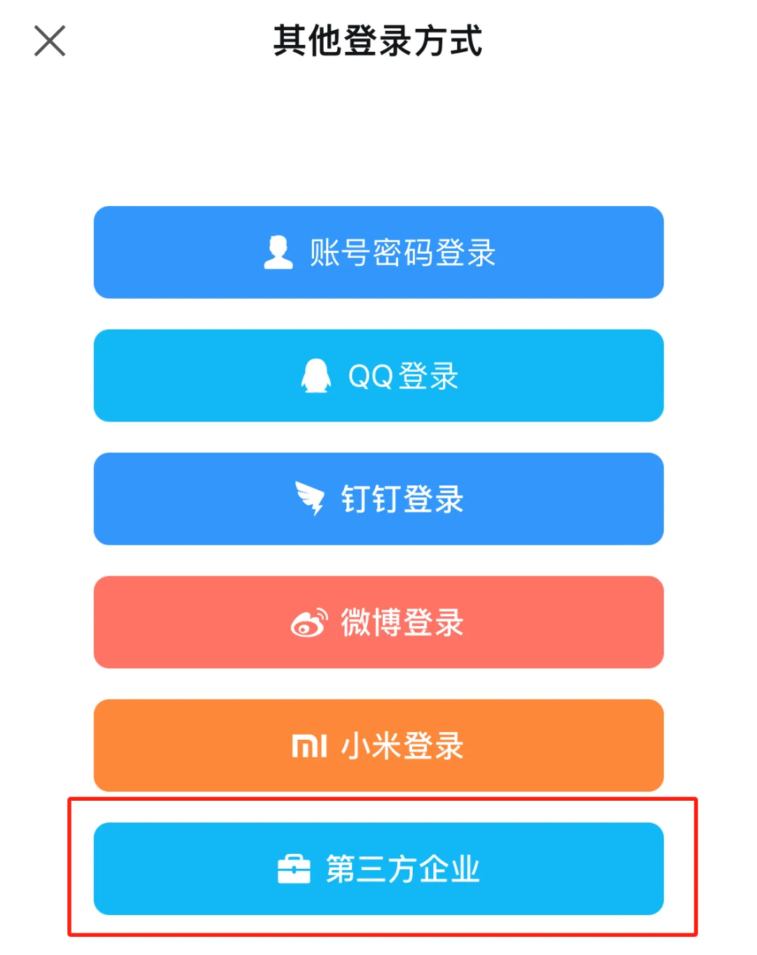 选择「更多登录方式」—「第三方企业码」—输入学校代码xnlydx,通过学校统一身份认证登录。