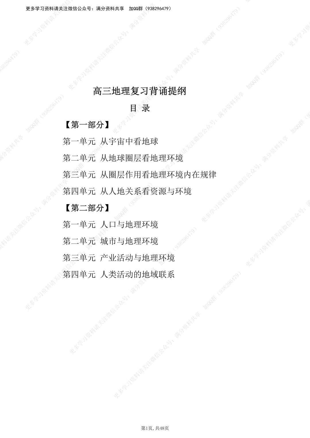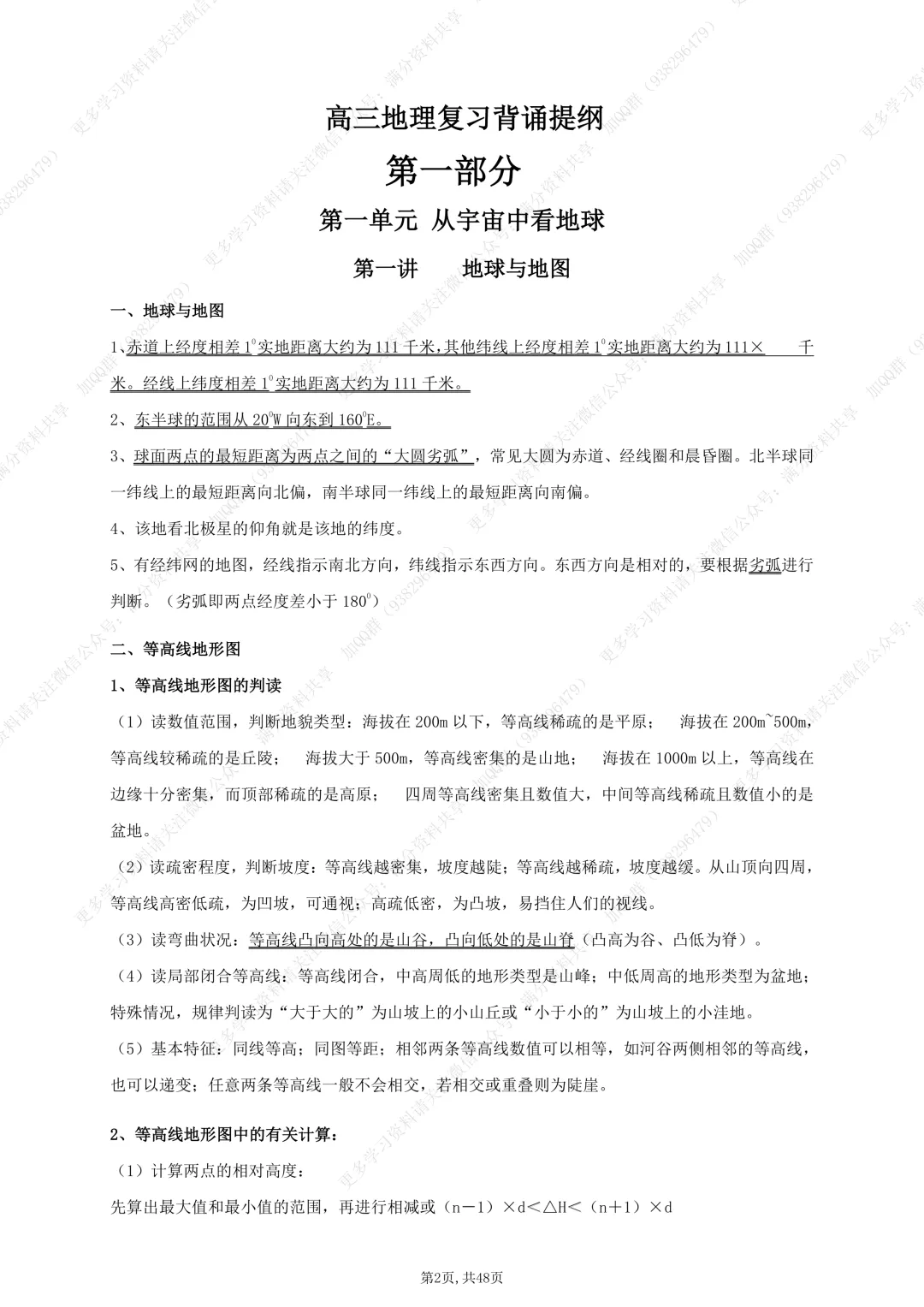 【高中地理】高三地理复习背诵提纲(pdf分享)