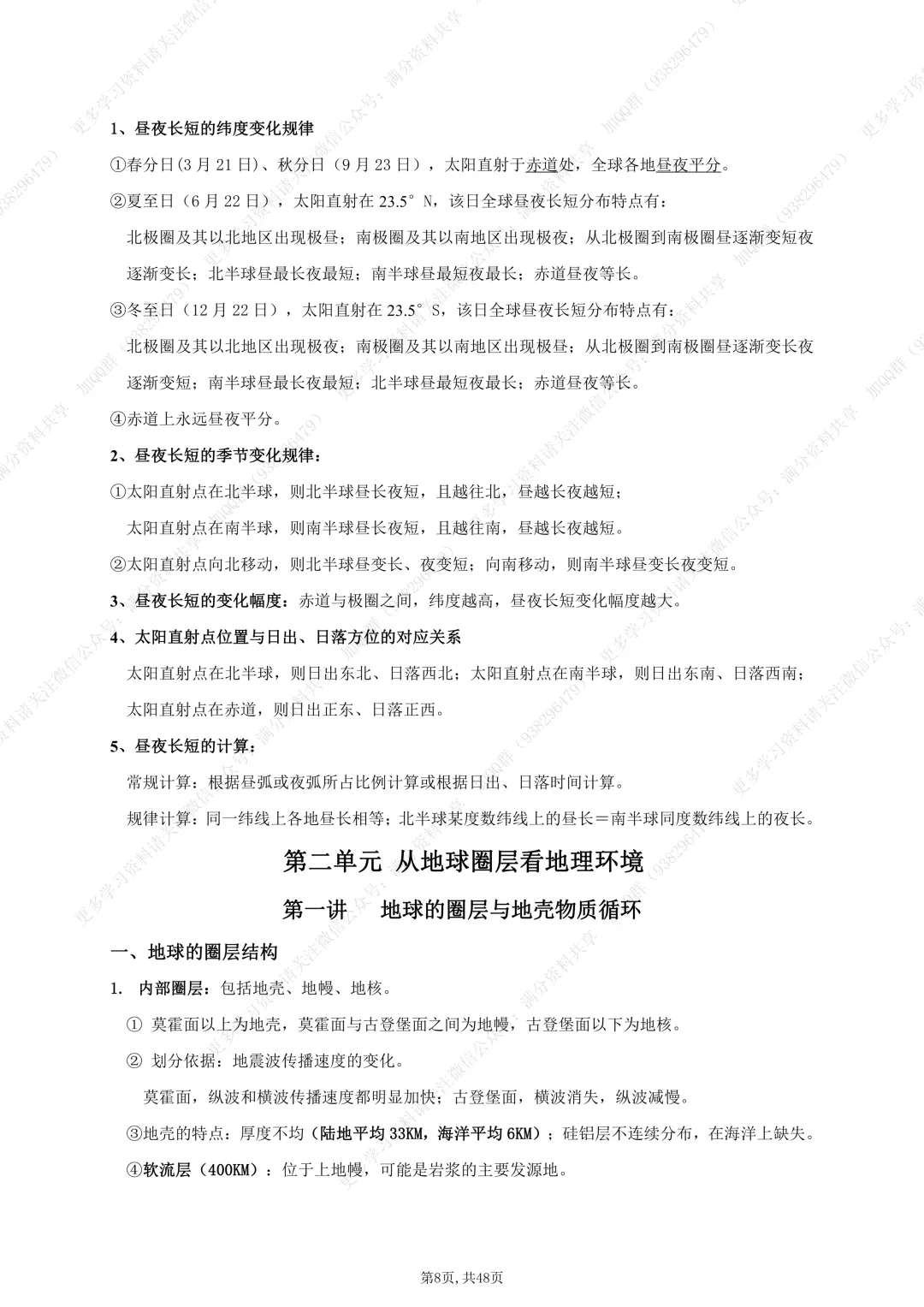 9.【知识手册】高中地理全册必背章节知识清单(人教版2019必修第一册)(pdf分享)