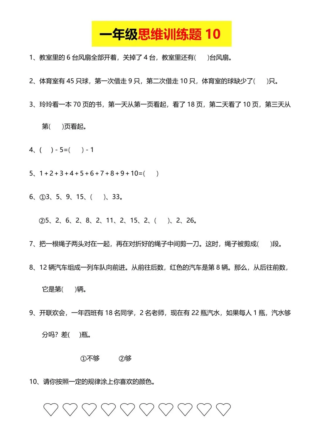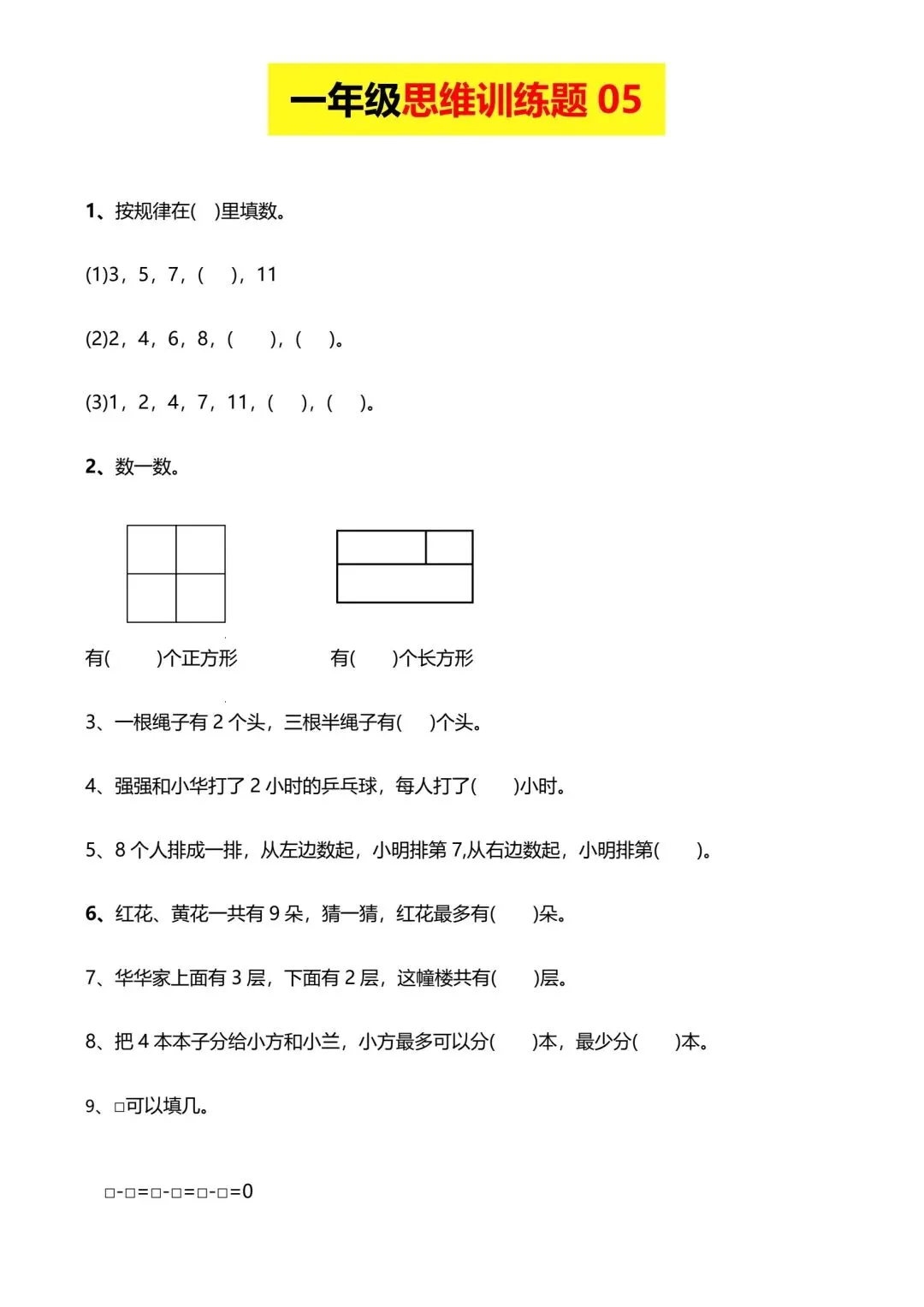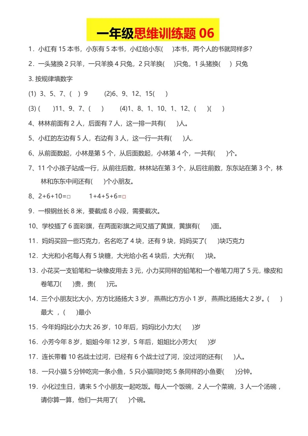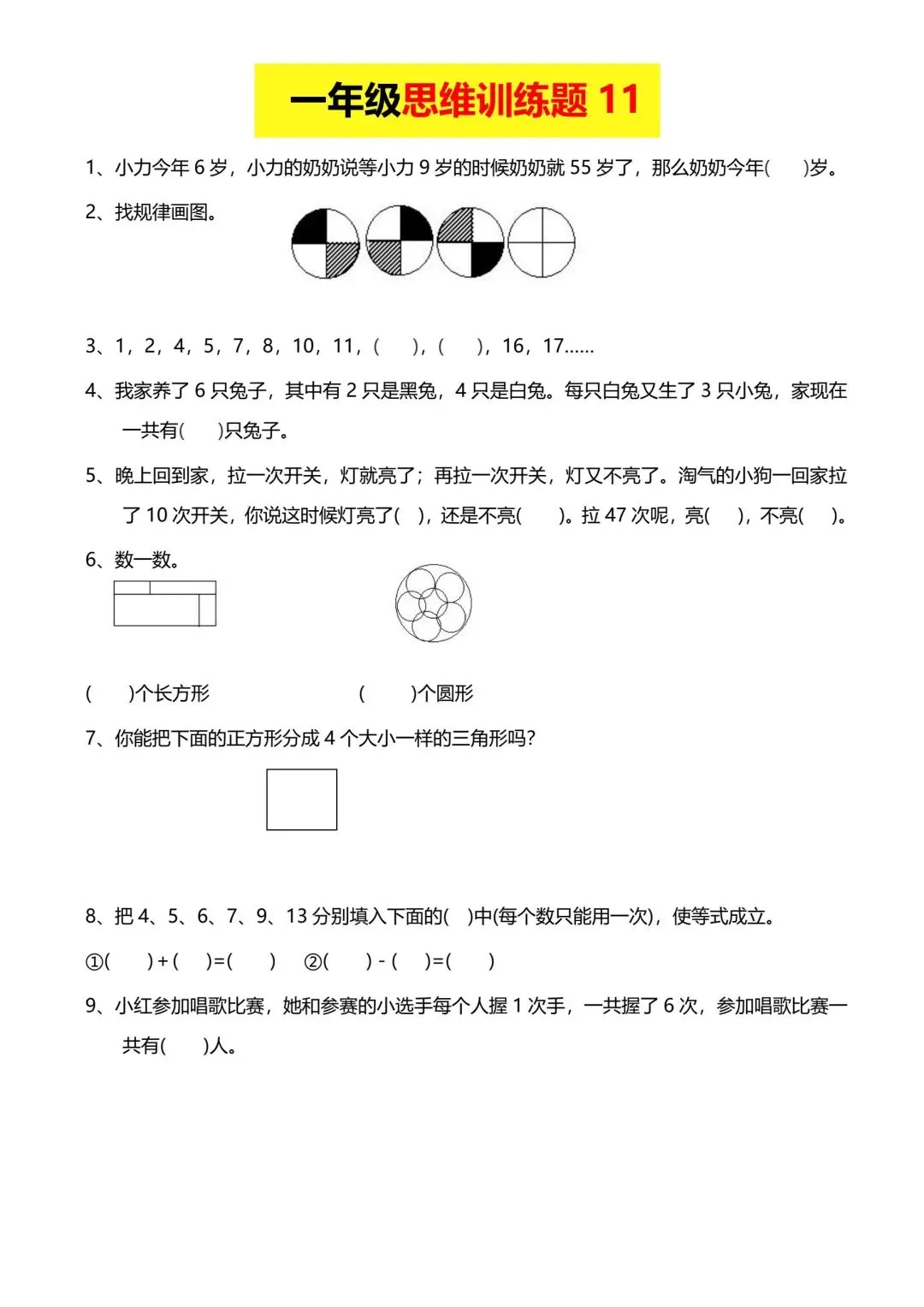 一年级(下)数学 思维训练题13套,电子版可下载免费