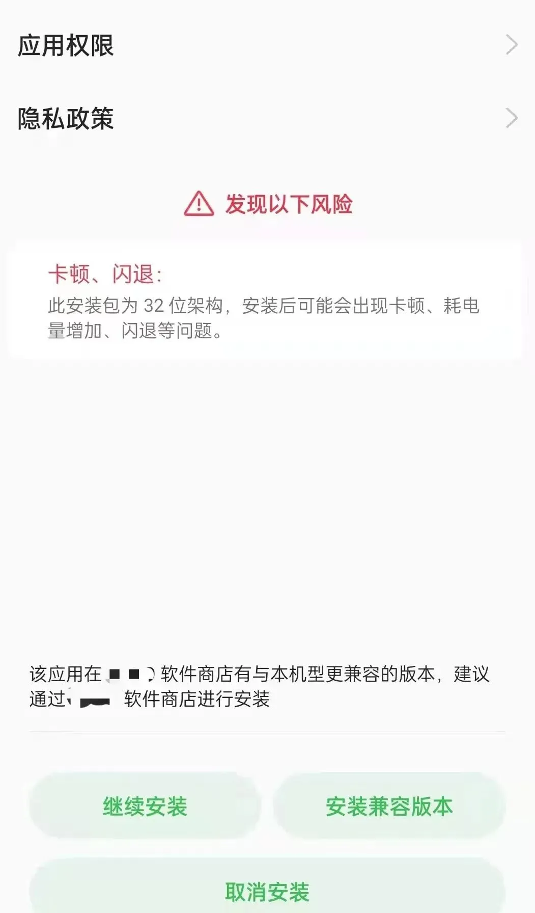 例如,下载安装来自第三方平台的APP时,会收到“未经安全检测”“可能存在安全风险”“对设备损坏或数据丢失承担责任”等提醒,并提示需要到手机自带应用商店下载、需要输入手机密码、需更改手机设置才可安装等情况。如果从手机自带的应用商城下载,则只需点击安装即可。