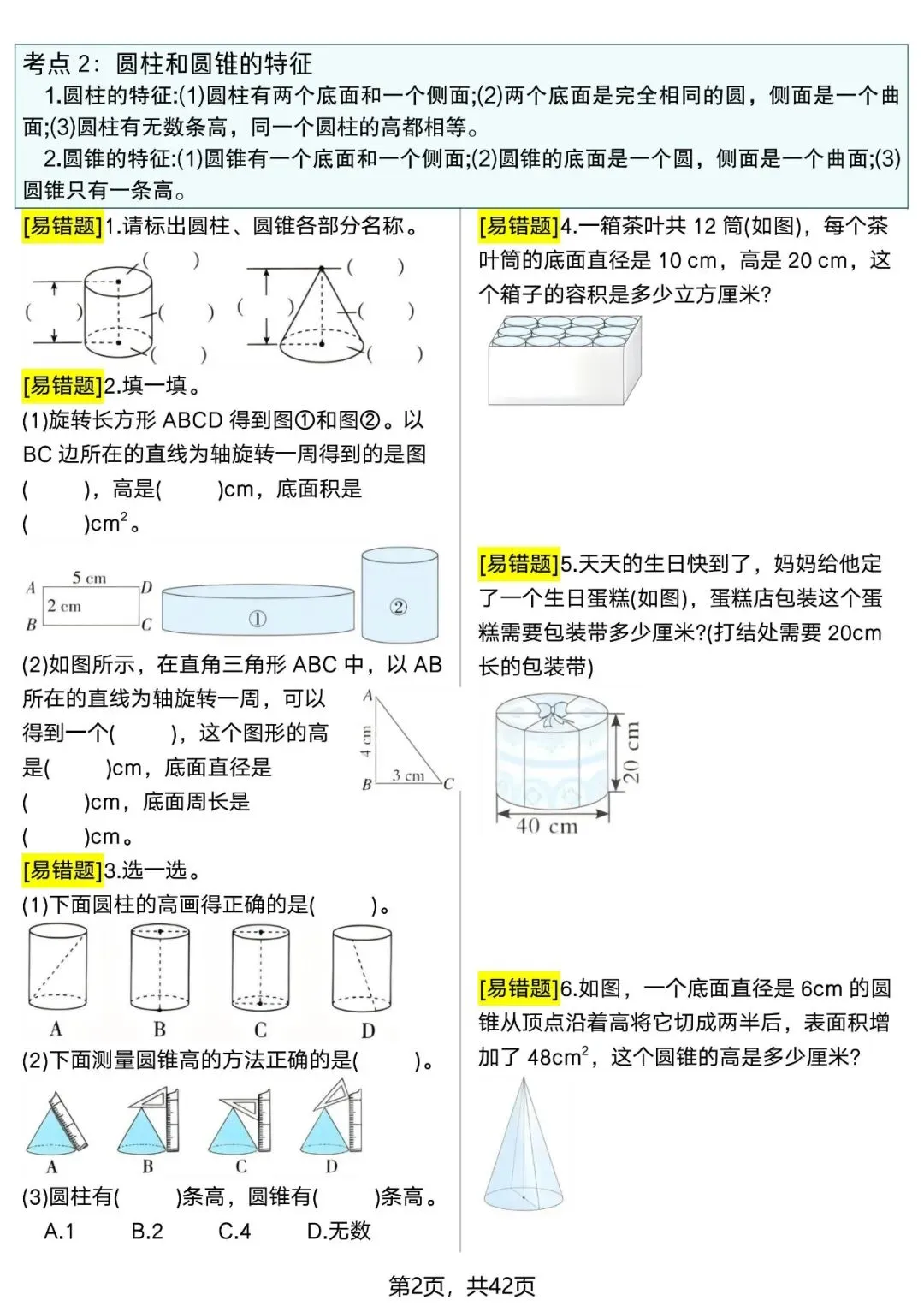 2026年春六年级下册北师大版数学《全册重点必背知识点归纳整理+易错专项训练》 有答案共42页,完整可打印