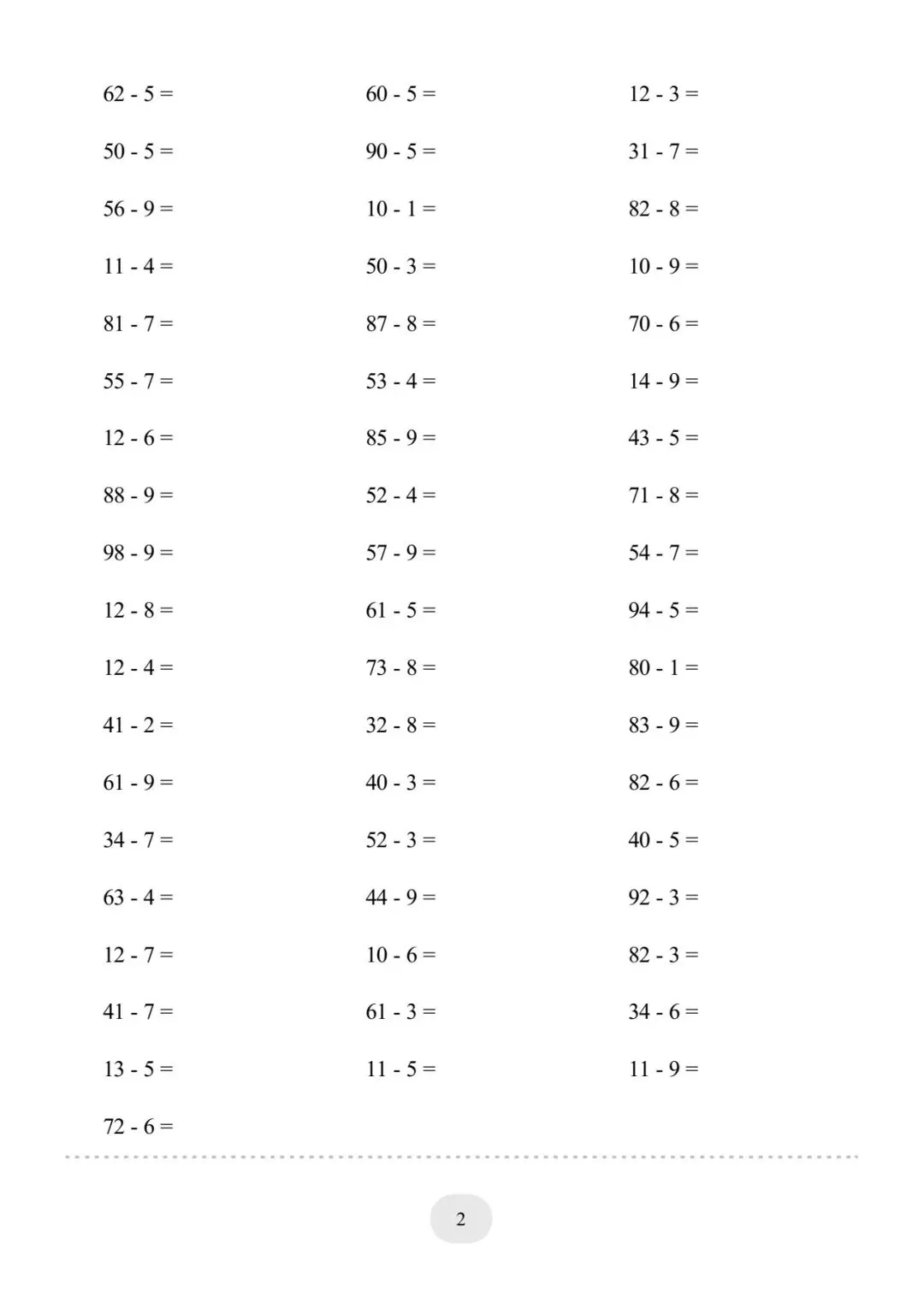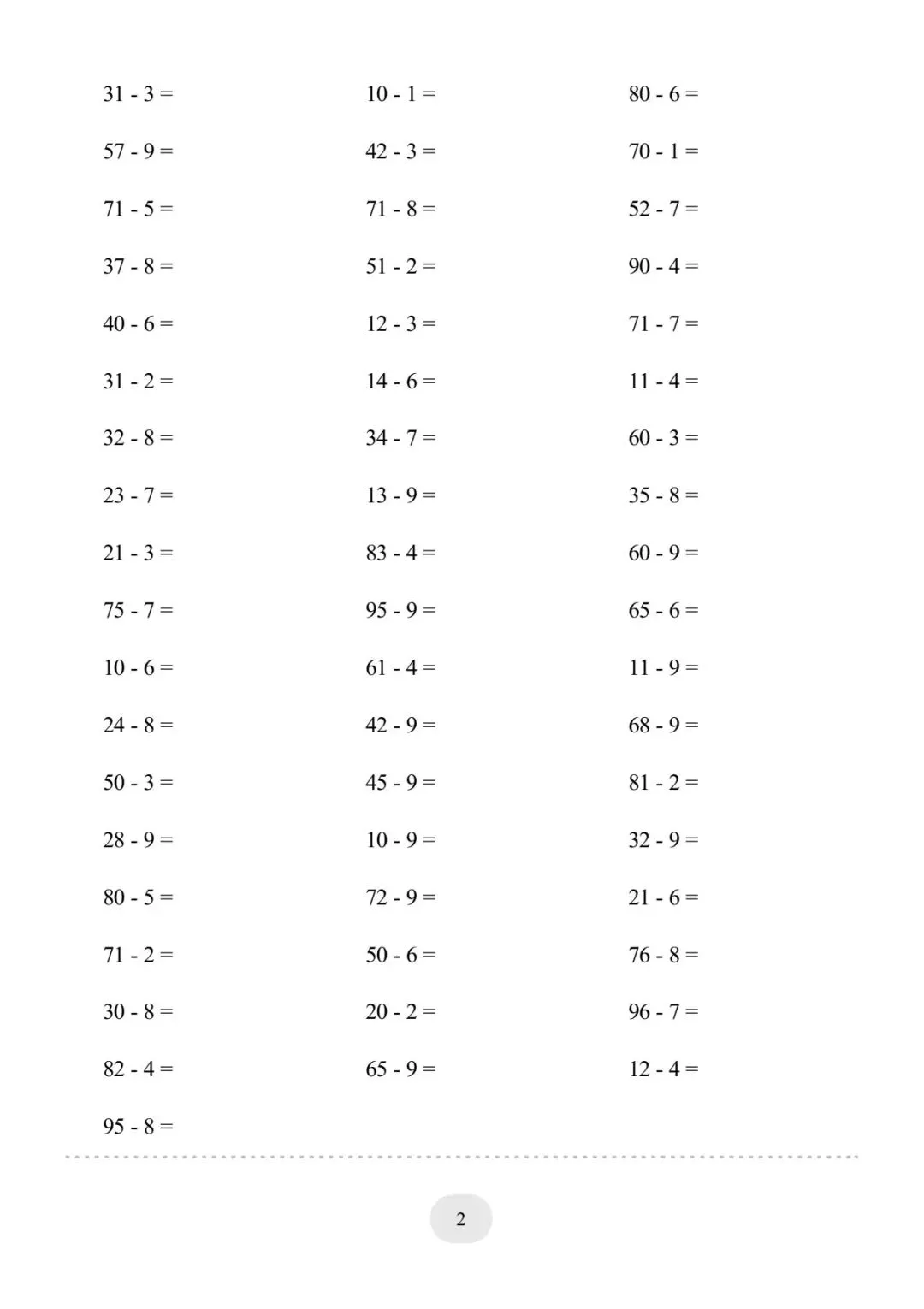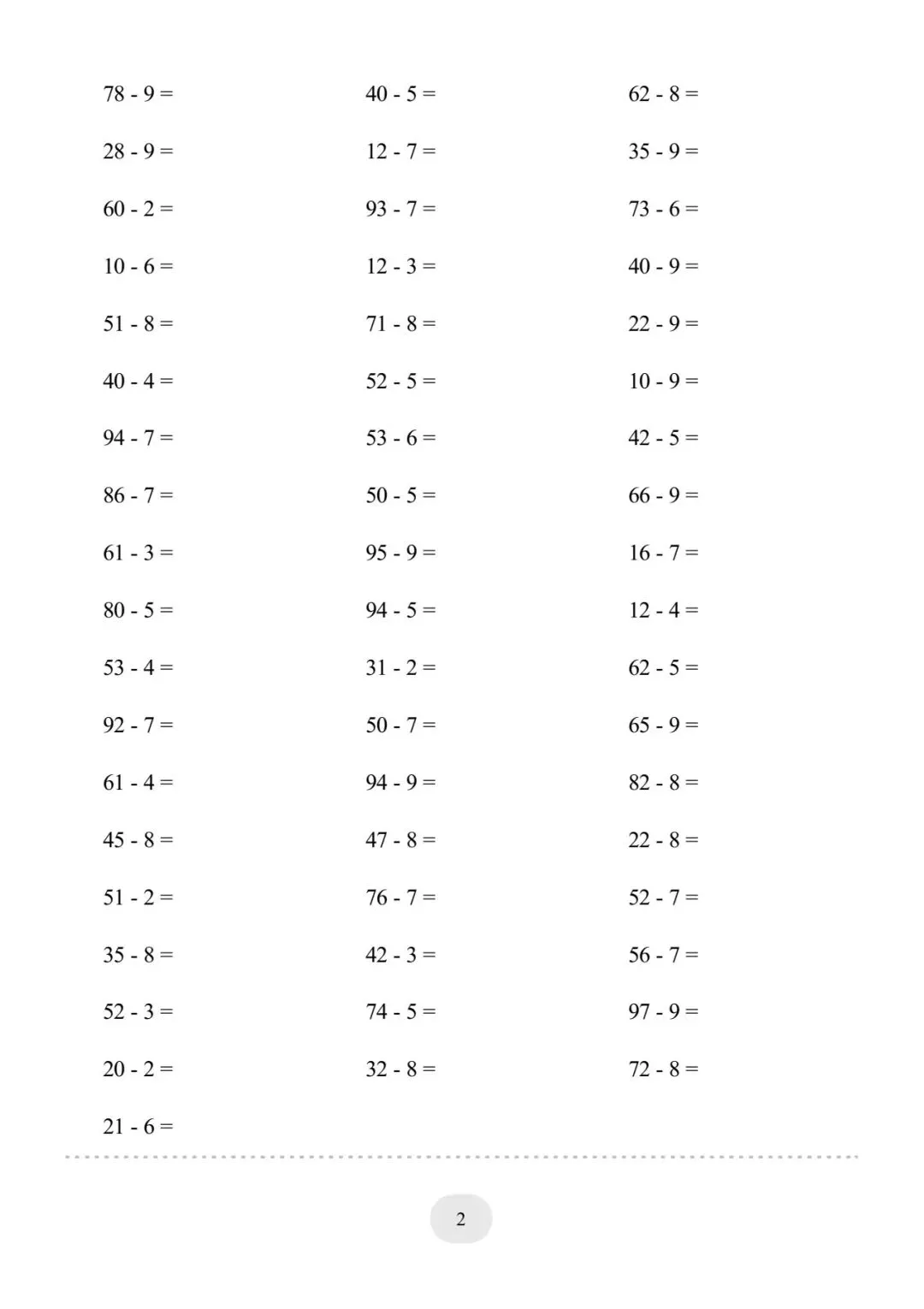 口算是小学数学的根基,一定要坚持练习。给大家整理了两位数减一位数专项减法,让孩子查漏补缺。快快下载打印出来和孩子练习起来吧。