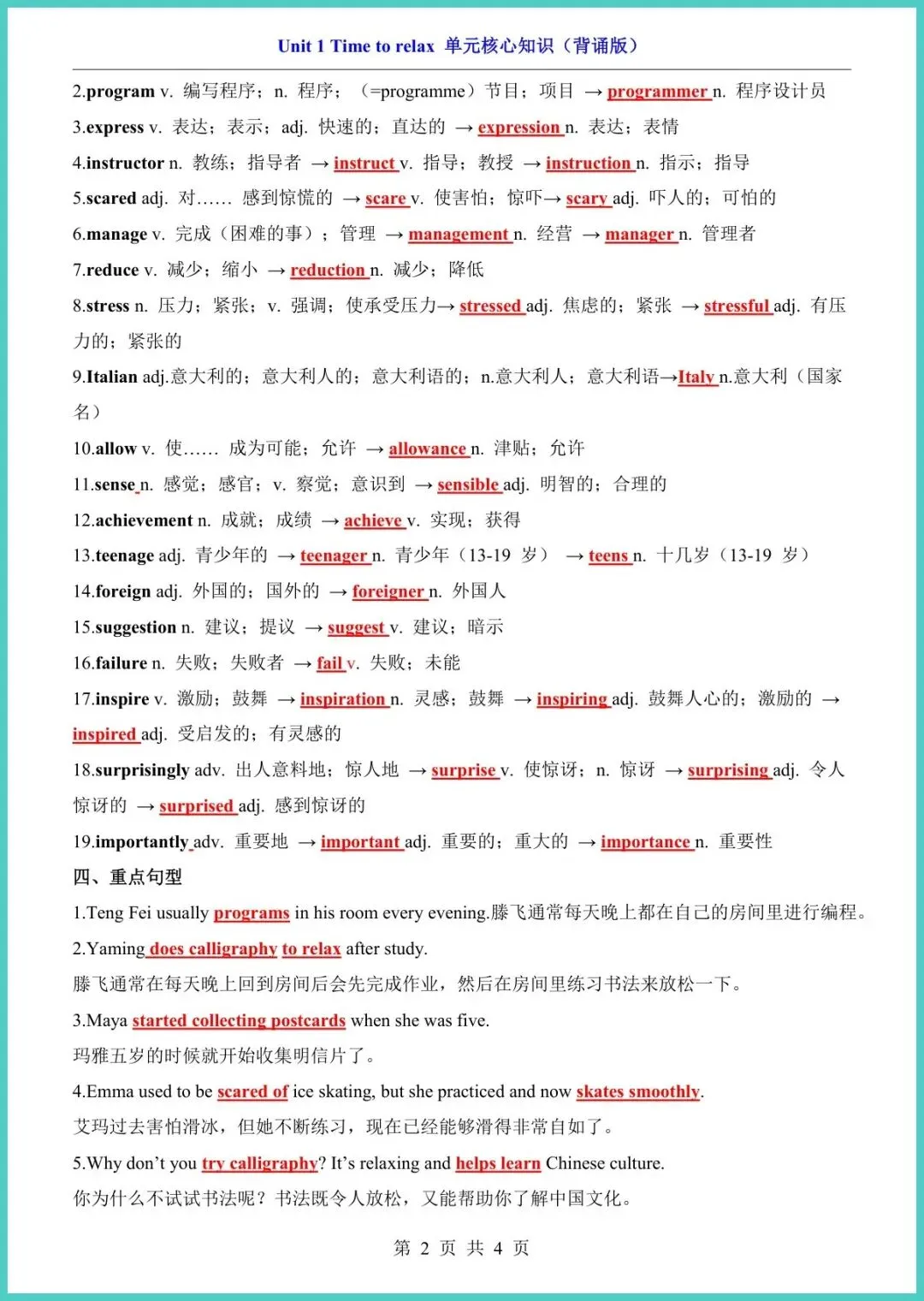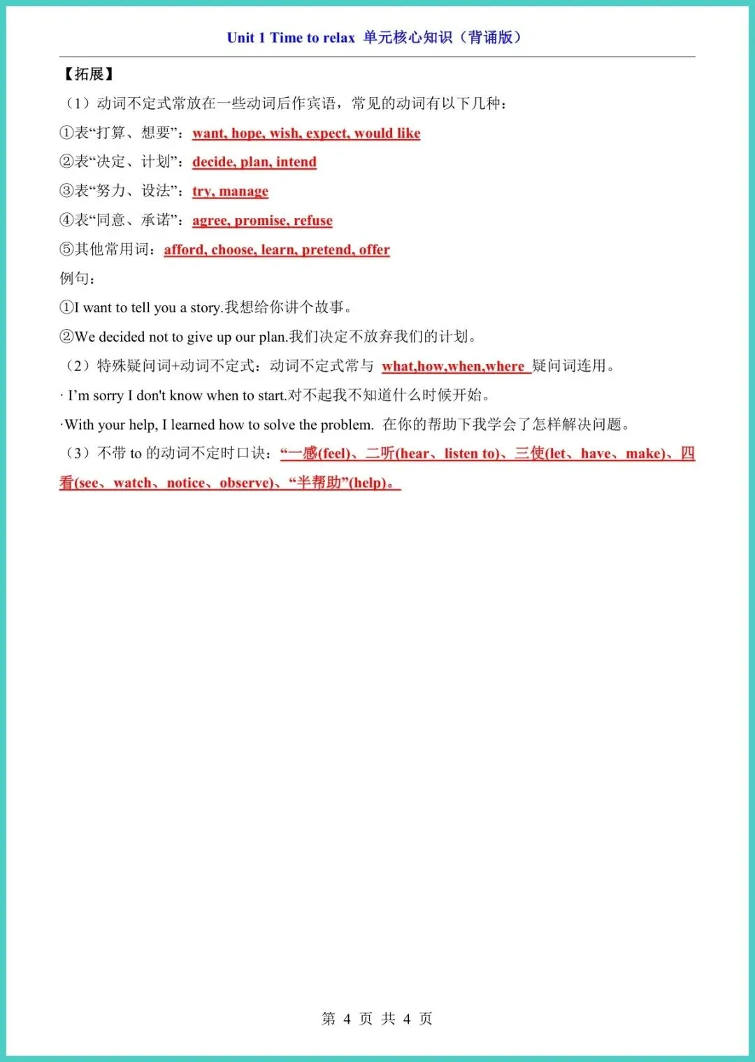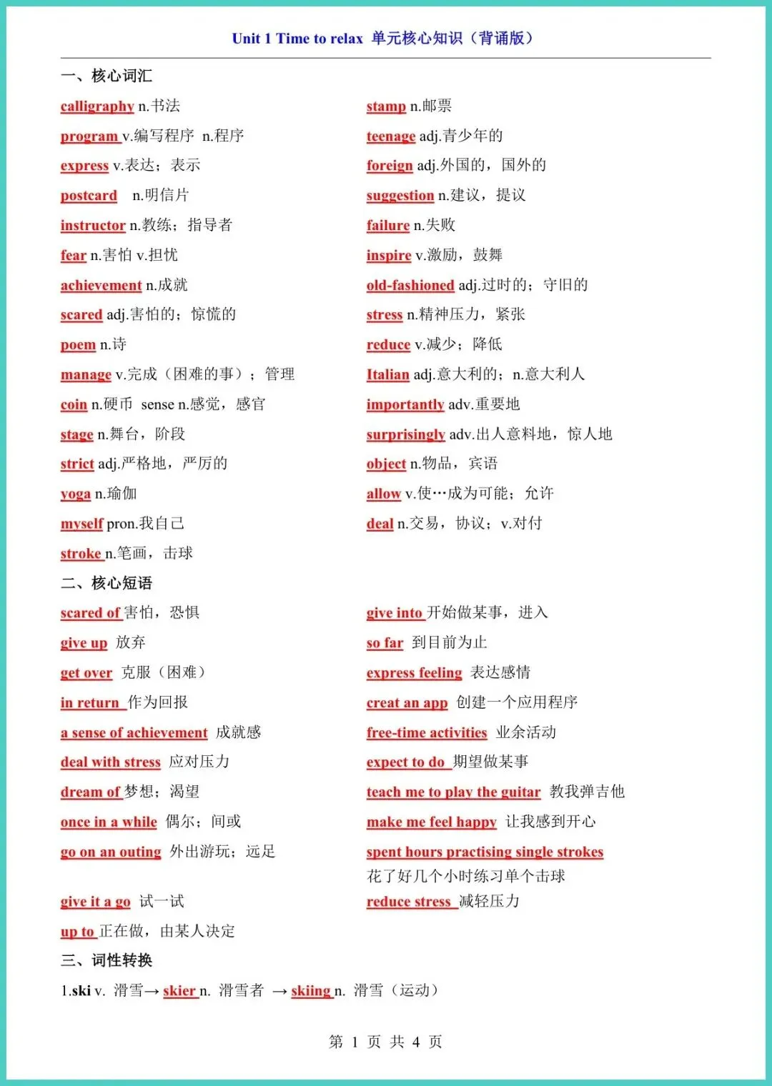 2026春人教版八年级下册英语Unit1核心知识,4页精华电子版新鲜出炉!这份小册子把重点单词、短语、语法点、易错警示一网打尽,配思维导图表格速记,孩子晨读5分钟就能背牢关键词,晚练10分钟语法填空正确率嗖嗖涨。期中考前翻一遍,作文套句、完形高频词全有,提分看得见!想让孩子开学就领跑的家长,速速打印贴墙,每天练一点,英语自信说!