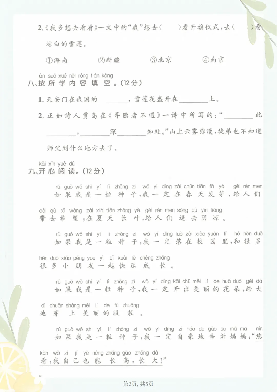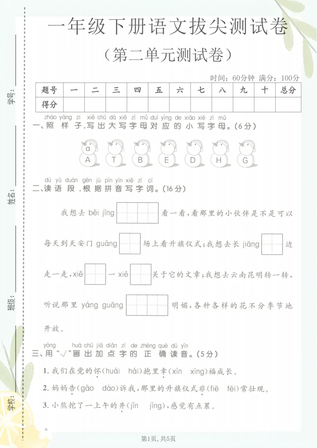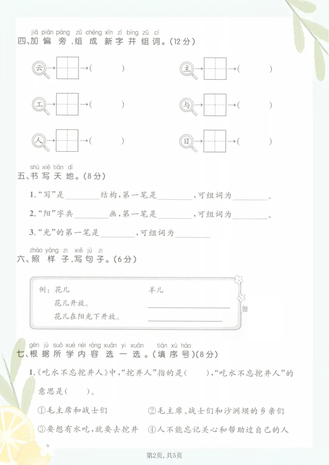 一年级下语文第二单元拔尖测试卷,电子版可打印 None (温馨提示:文末有完整领取方式) 免费领取完整电子版 ①:点一点右下角的“赞”和“在看”,感谢!②:在公众号对话框中回复: 1957 ③: 点击小程序领取→电子版资料