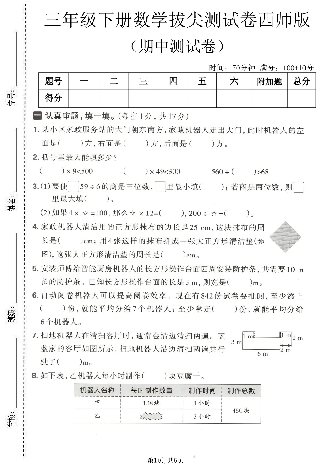 今天给家长们分享的是:26年春新三年级下册西师版数学《期中拔尖考试测试卷》2套附答案‖高清电子版可打印