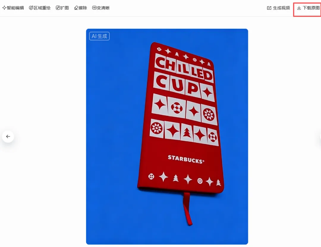 可以看到他已经把背景修改为了我需要的效果,接着我们点击这个生成的图片会在右侧出现一个下载按钮,点这个下载按钮就可以将这个图下载到本地的电脑上,进行进一步编辑。
