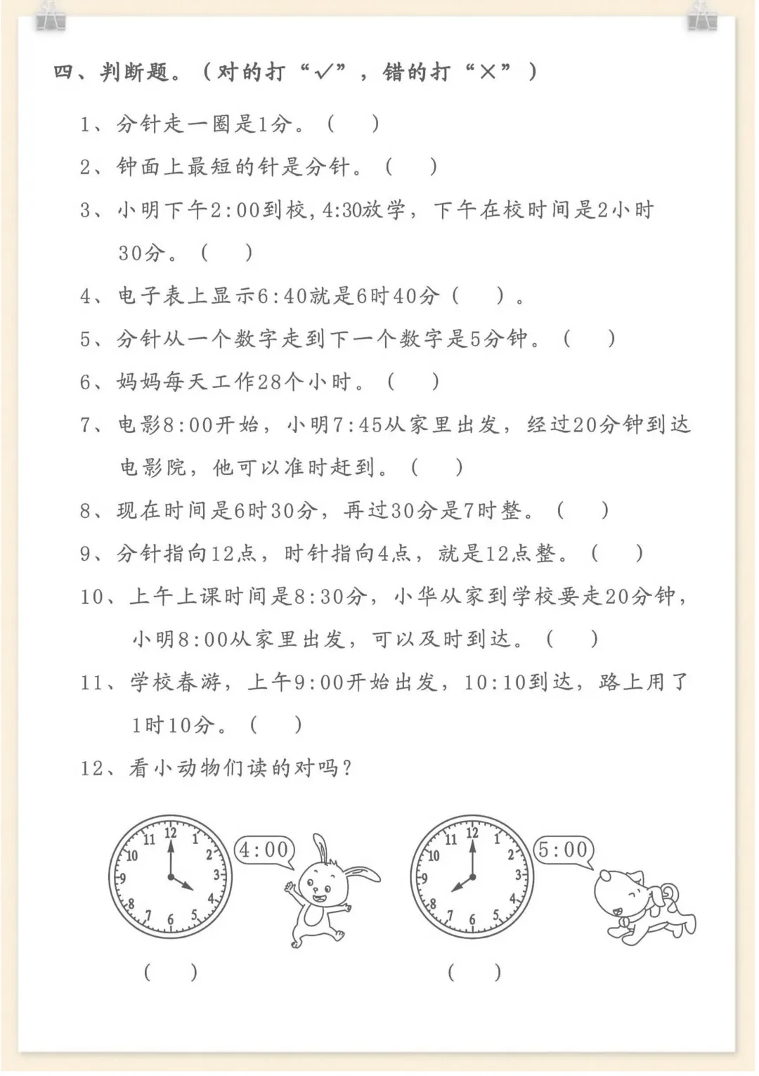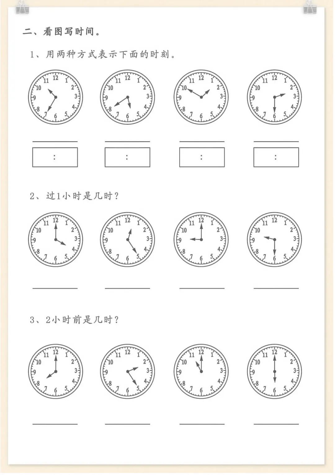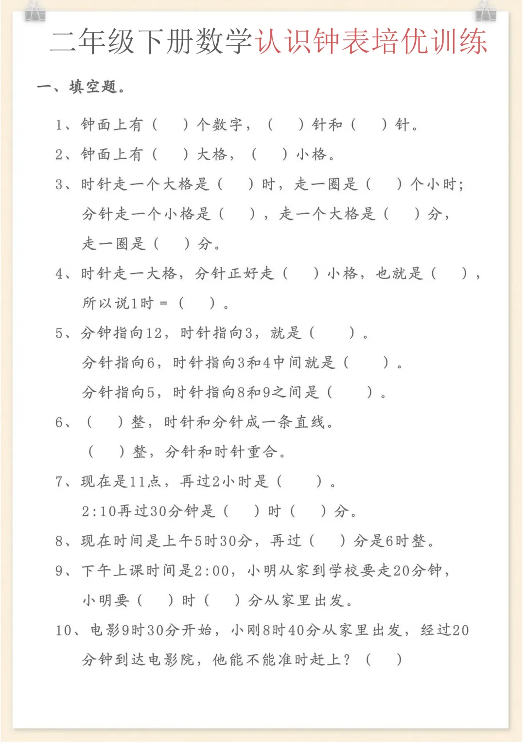 二年级下数学认识钟表培优训练,电子版可打印 None (温馨提示:文末有完整领取方式) 免费领取完整电子版 ①:点一点右下角的“赞”和“在看”,感谢!②:在公众号对话框中回复: 2864 ③: 点击小程序领取→电子版资料