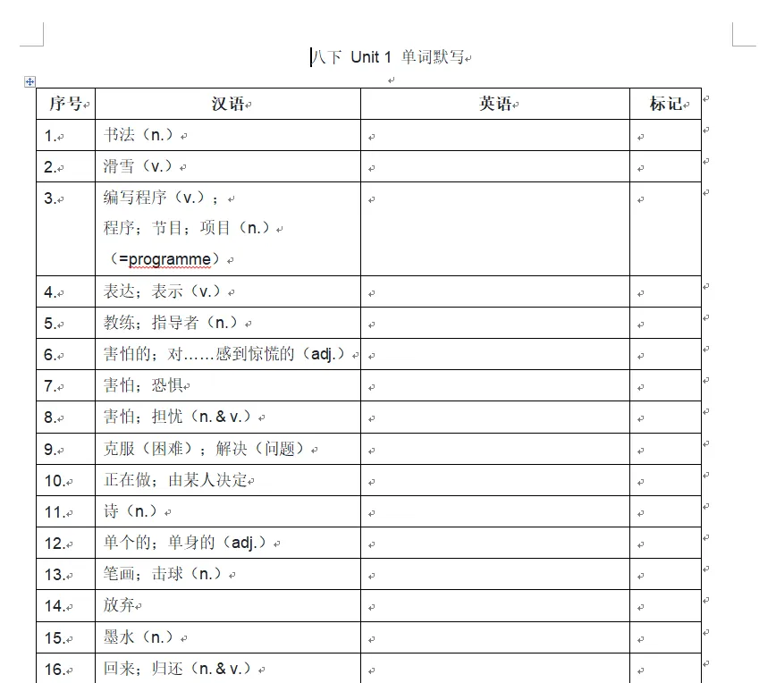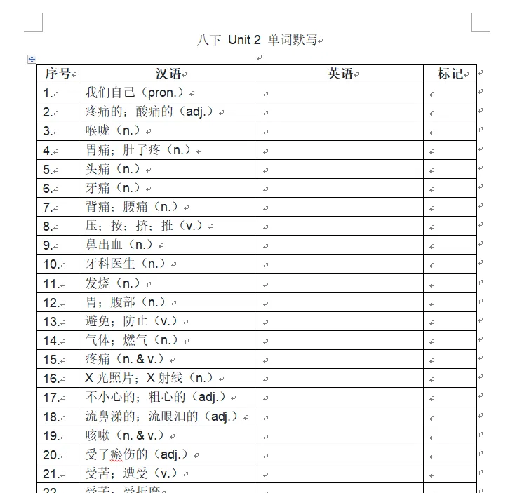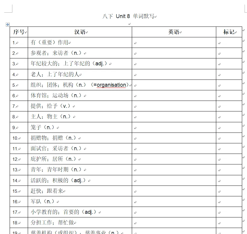 人教英语八年下册单词默写(word版,可下载)