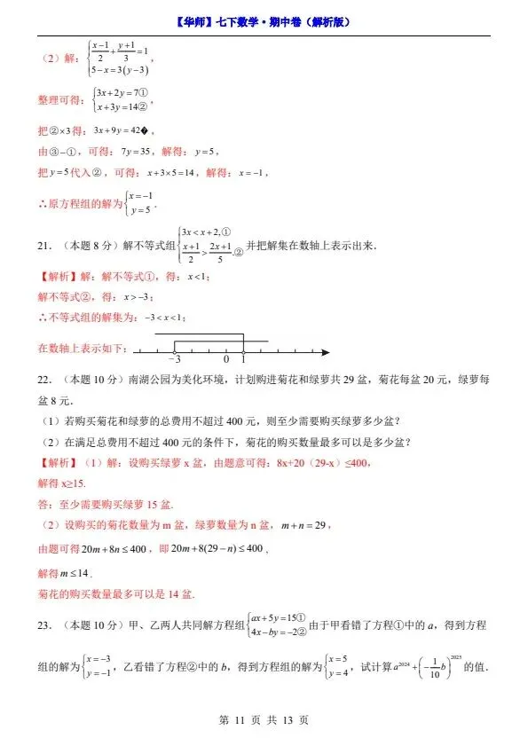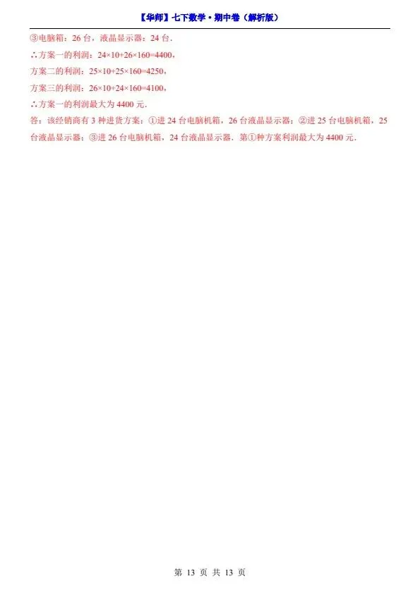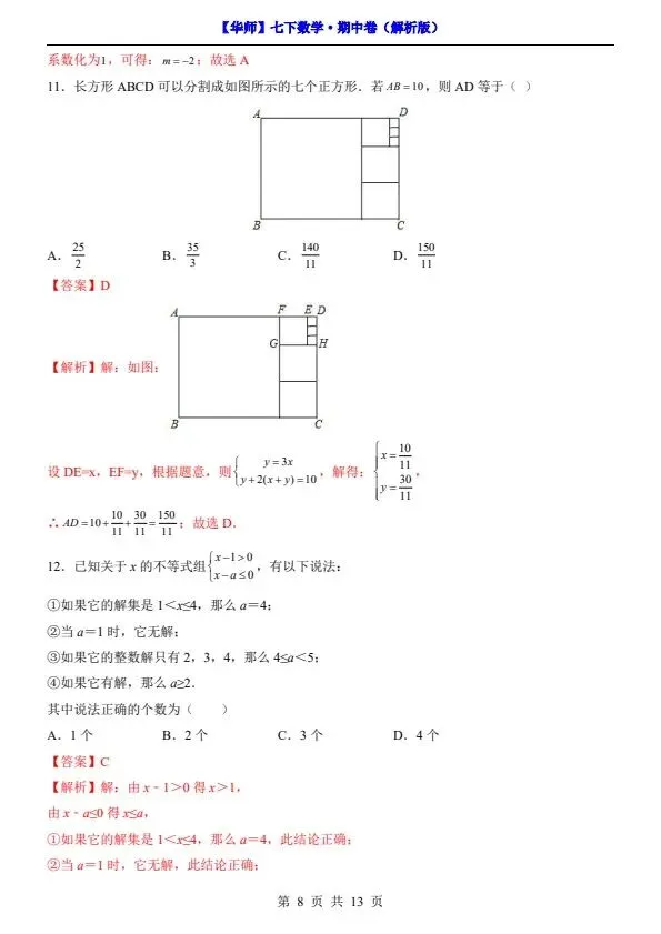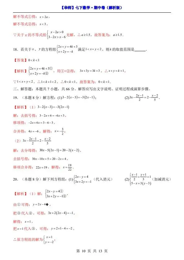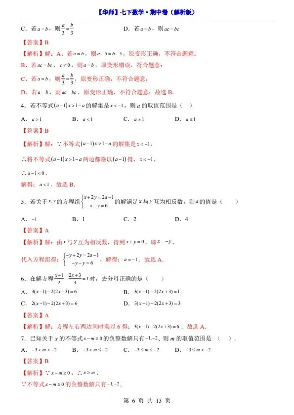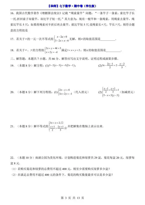 新七年级下册数学华师版期中试卷(答案+答题卡)完整电子版可打印!家长关注收藏,让孩子用高效的方法学透知识点,用优质的资源为学习赋能,在成长的赛道上稳步前行,轻松提分!