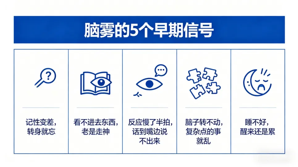 以下几种表现,如果你长期反复出现,可能提示你脑雾前期需要重视了: