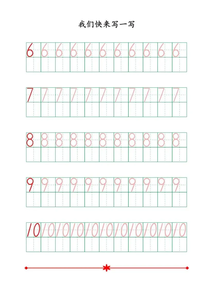 阿拉伯数字书写,PDF免费下载 通过网盘分享的文件:数字1-10.pdf 链接: https://pan.baidu.com/s/10oHi0MzHUTGdQyY4a-G_bA?pwd=xtky 提取码: xtky