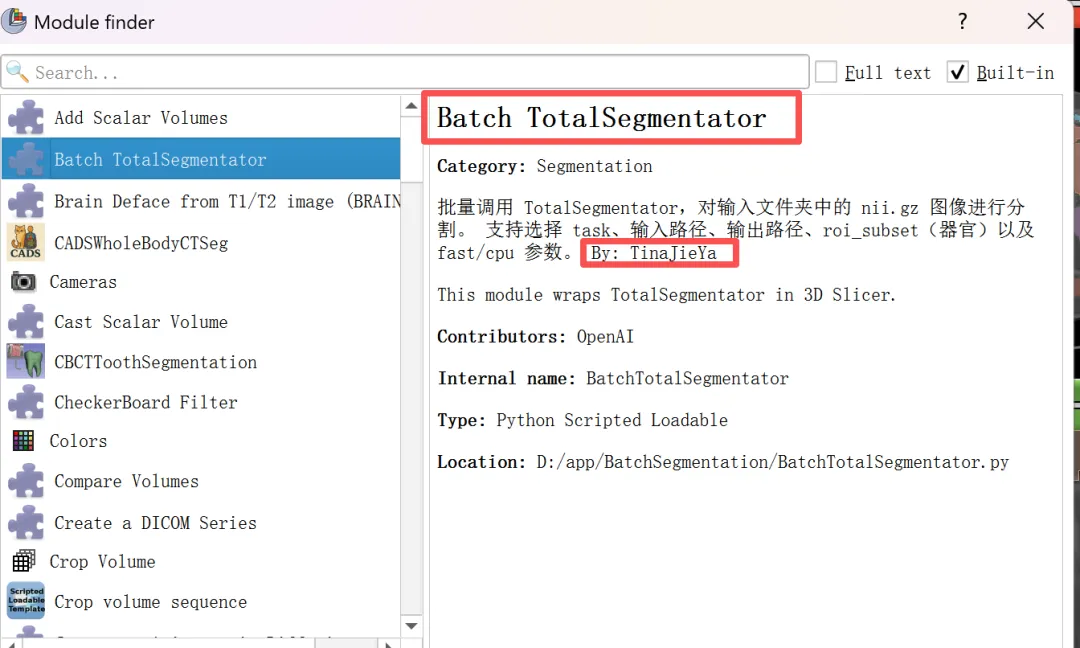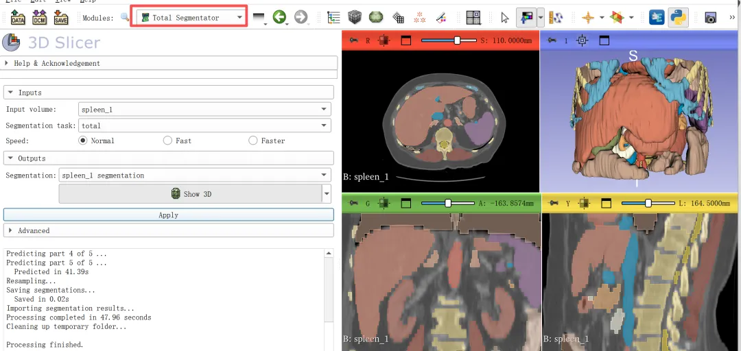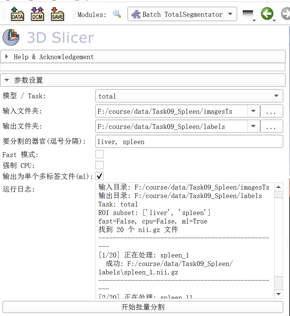 其实,TS提供了python端调用的接口,也写了python端批量分割的代码,但对于喜欢在界面点点点的医生来说,这还是很麻烦的。所以我就把这个功能写到了slicer里。让你们点点点就能批量分割,指定器官,而不是一股脑梭哈。