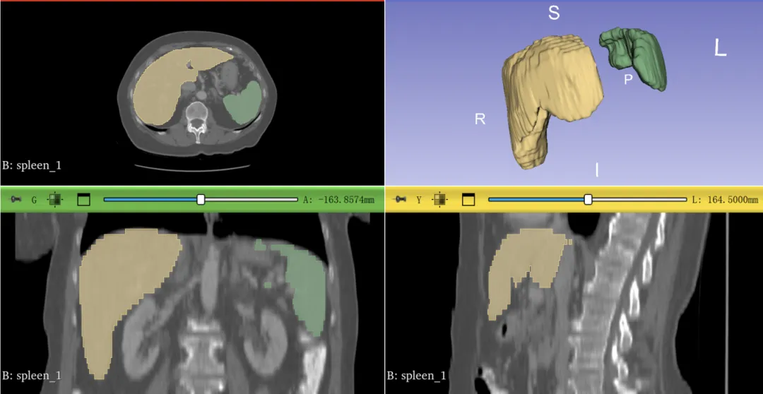 比如,上图里,我选择分割脾脏,肝脏,最后的结果就是只分割了这两个器官,不需要再手动删除不要的器官了~