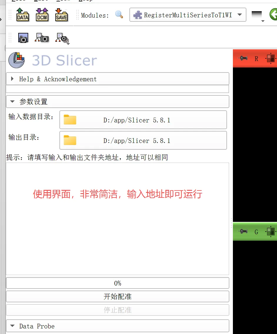 使用非常简单,如上图,只需要设置输入输出地址就行,然后点击开始配准。下面是配准进度显示。
