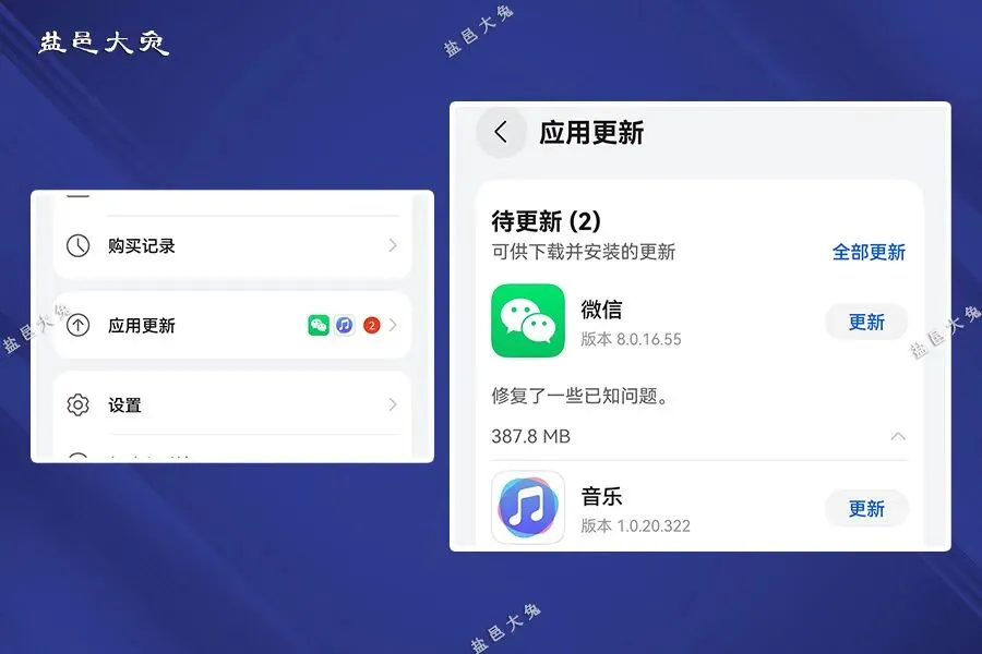 4月12日,我Pura70收到应用市场(App Gallery)的温馨提醒,鸿蒙原生微信App最新版本(版本号为8.0.16.55)待更新,并在Wifi环境下成功完成此次更新。