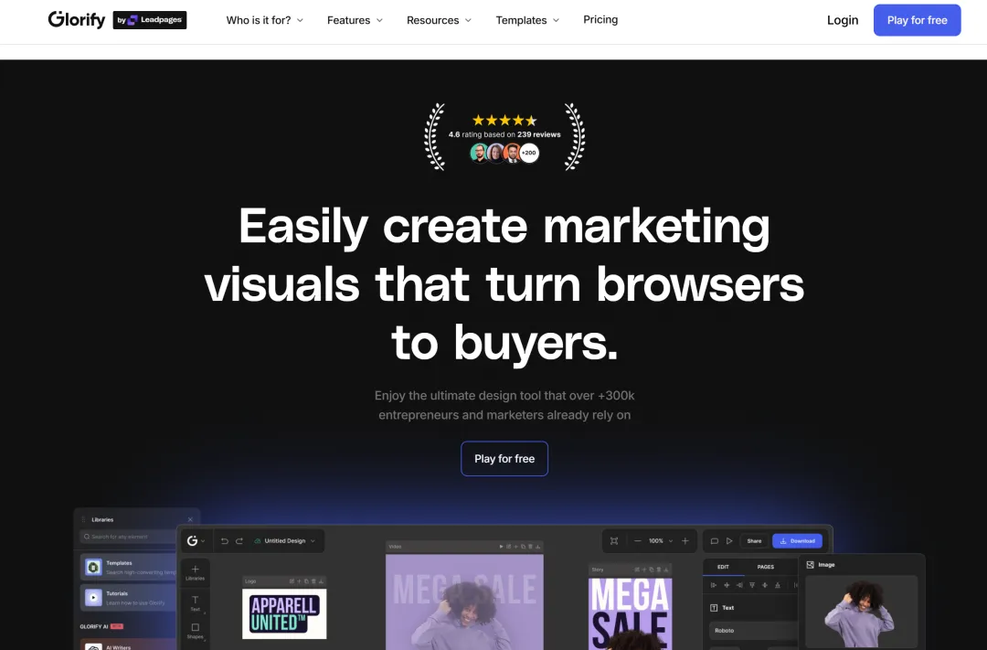 Glorify 是一个基于 AI 的在线图形设计工具,专为电商企业主和设计师打造。它提供了一个集设计、编辑和协作于一体的平台,让你可以在一个地方完成所有设计工作。无论是创建多张图片、动画、PDF 还是演示文稿,Glorify 都能轻松搞定。