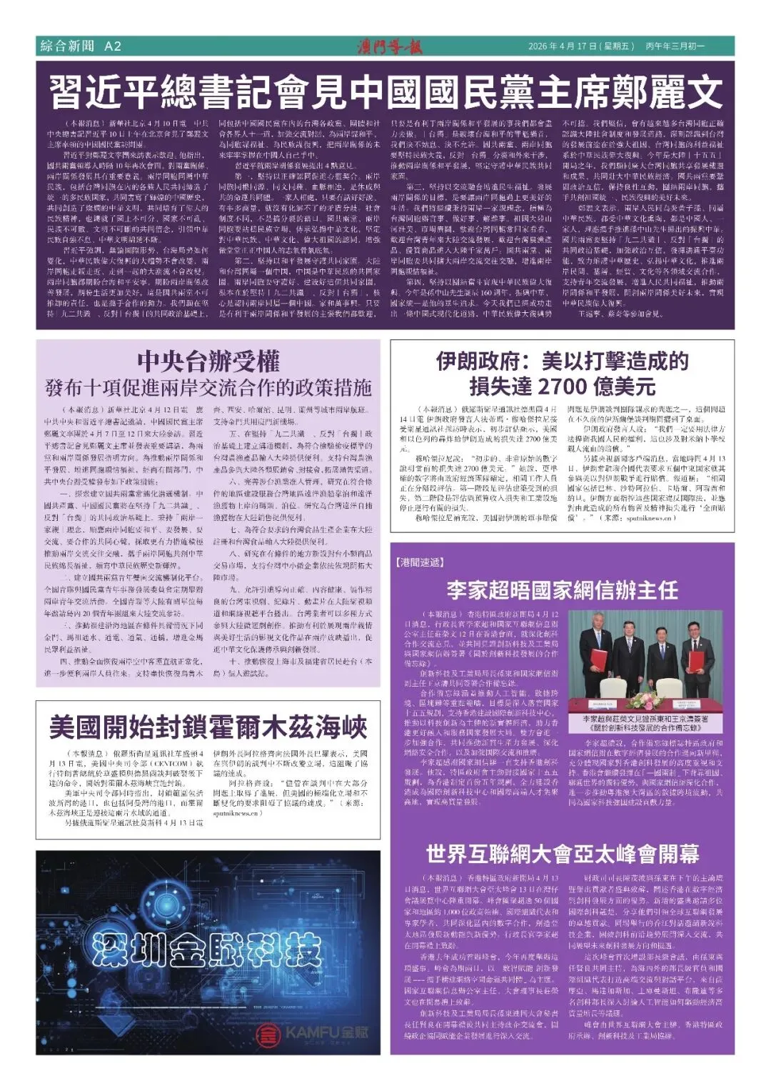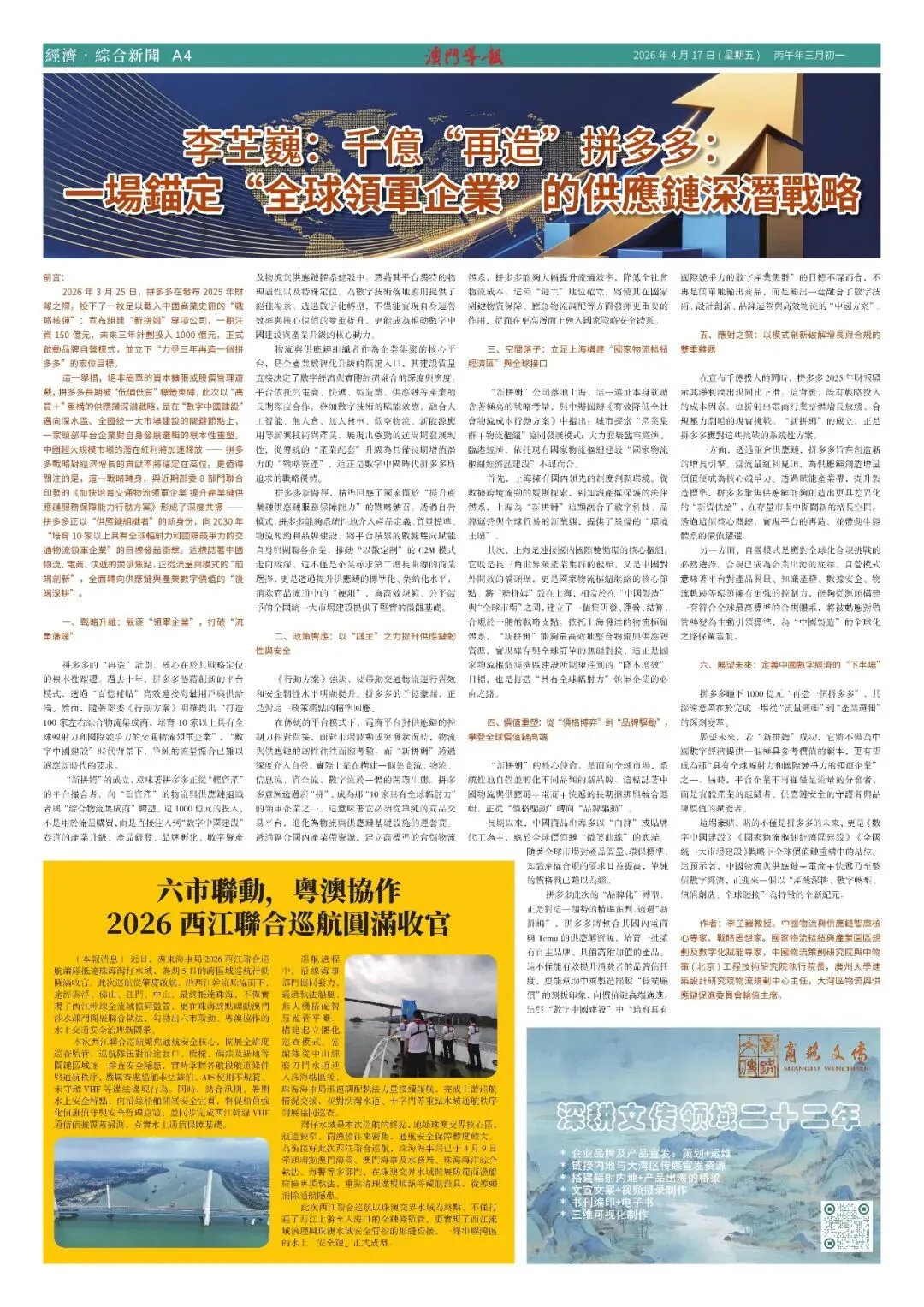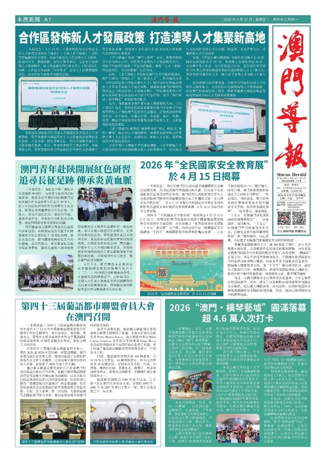 【澳門導報】04月17日 版面 + 電子版 灣區智慧 全球視野 點擊下方 “閱讀原文” 瀏覽往期《電子報》及連載 往期推荐 無人機匯演来啦!周六晚9時不見不散 有片!海關查獲改裝應急電源夾藏走私白銀案 停止食用!一款可能含異物的金針菇產品 免費玩手作!國風拾趣工房五月精彩登場 點擊下方 “閱讀原文” 瀏覽往期《電子報》及連載 澳門導報微信 澳門導報官網