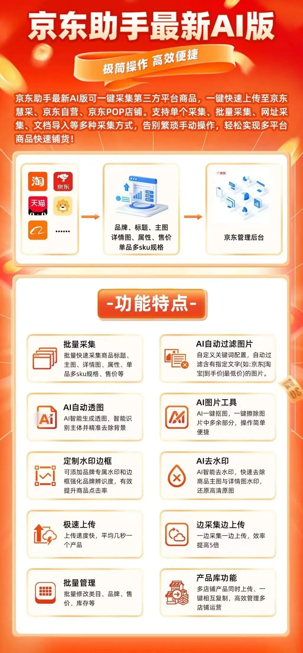 京东上架助手来啦~适配京东慧采,全国通用不挑区域,操作巨简单!不用手动逐行填信息,不用反复改参数,文档导入+ 批量采集一步到位,