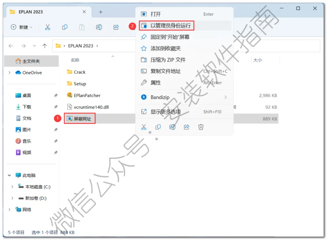16、回到EPLAN 2023文件夹,找到【EPlanPatcher】应用程序,右键选择【以管理员身份运行】它