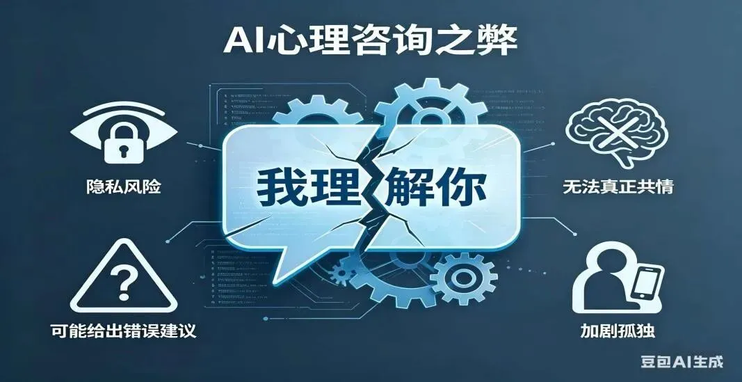 对话内容可能被储存用于训练,敏感的心理信息可能被泄露,没有像心理咨询保密伦理的约束,你把最脆弱的一面说出去,安全感最根本上就是弱的。