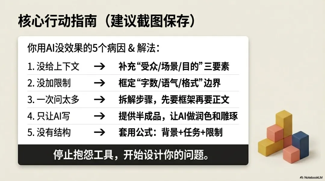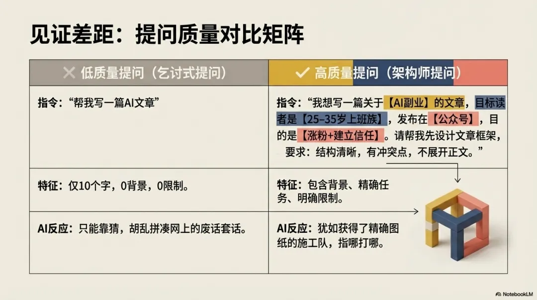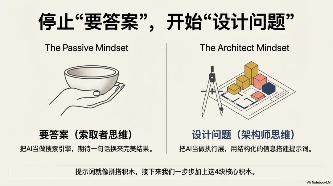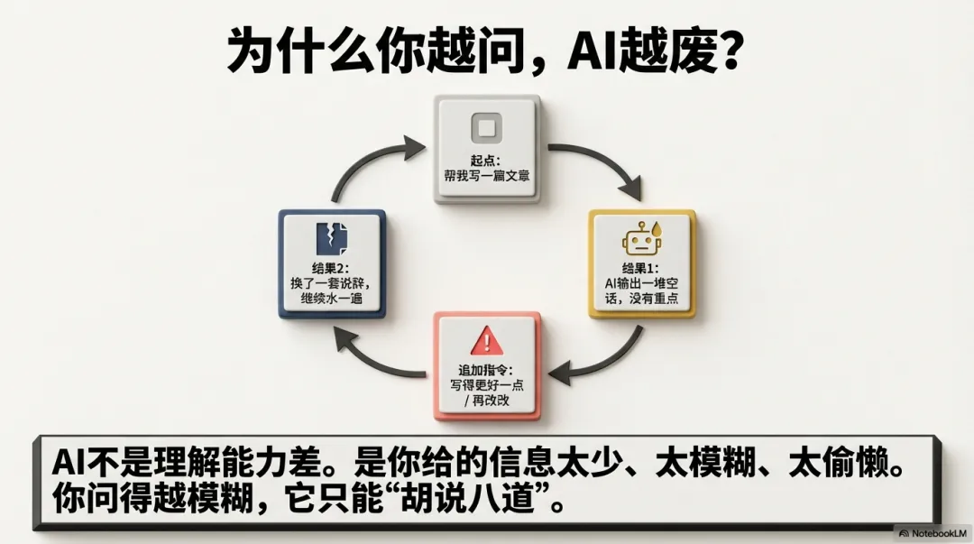 下次你觉得“AI不好用”的时候,先别换工具。先看看你是怎么问的。很多时候,不是AI不行。是你问得太随便了。