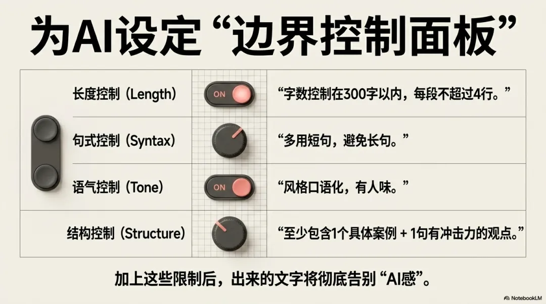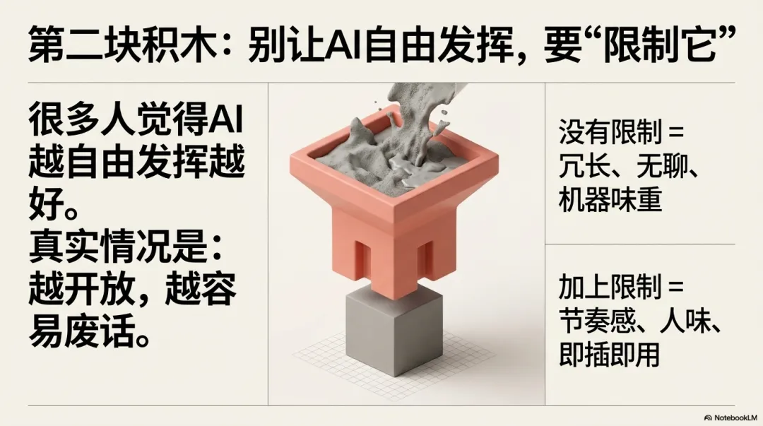 同样一个AI,加了限制之后:更有节奏,更像人写,更容易用。