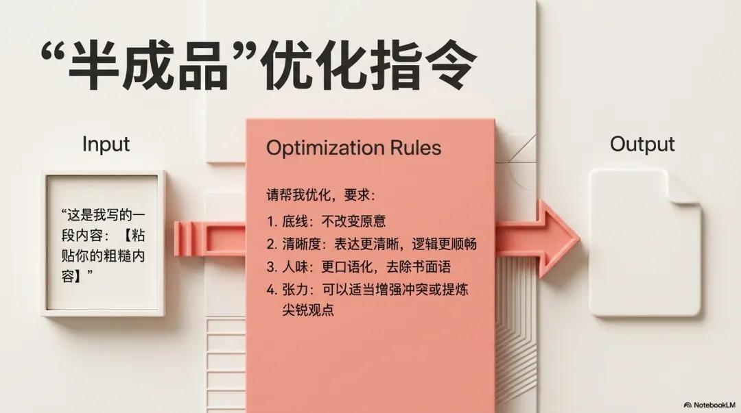 我的做法:我会先给一个“半成品”,再让AI优化。