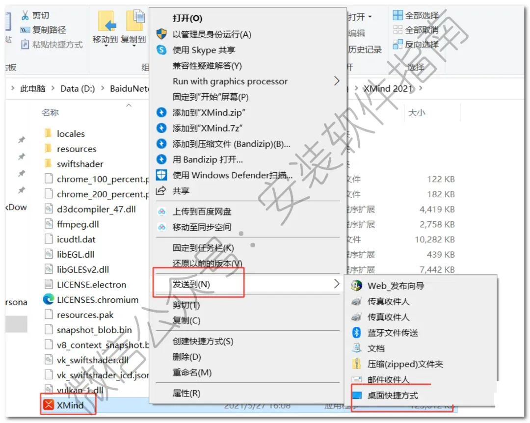 6、鼠标右击【Xmind】选择【发送到】选择【桌面快捷方式】。