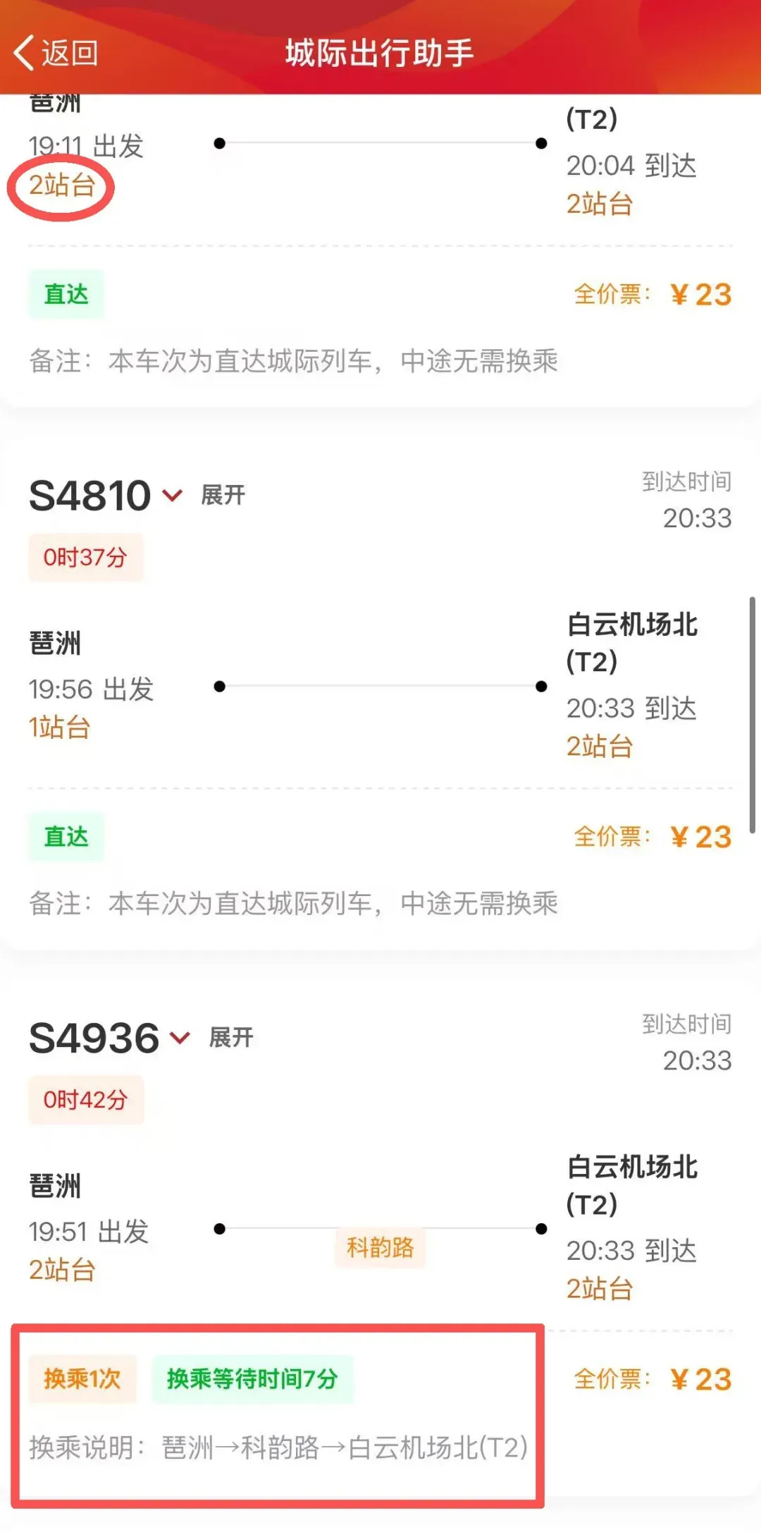 此外,广州地铁App、广东城际官方微信公众号的“城际出行助手”新增“站台显示”功能,旅客可直观获取站台信息,轻松分辨“同站台换乘”或“跨站台换乘”,并提供了更多样的“快普车”接续方案,进一步方便旅客规划出行、便捷换乘。