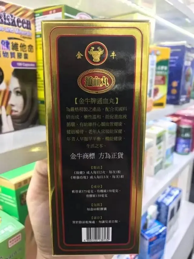 金牛牌特强通血丸,专治肝亏脏损全身血管硬化,帮助血液循环畅通,降虚火,清血络,预防高血压不至于有脑冲血之忧,排除全身毒质废物,驱散瘀血,增进血脉推运机能确有特别之奇效!适应范围:专治肝肾亏损,腰酸背痛,脚膝拘挛,筋痛骨痛,手膝冷痹,筋骨无力,除风湿,行血,强筋壮骨。