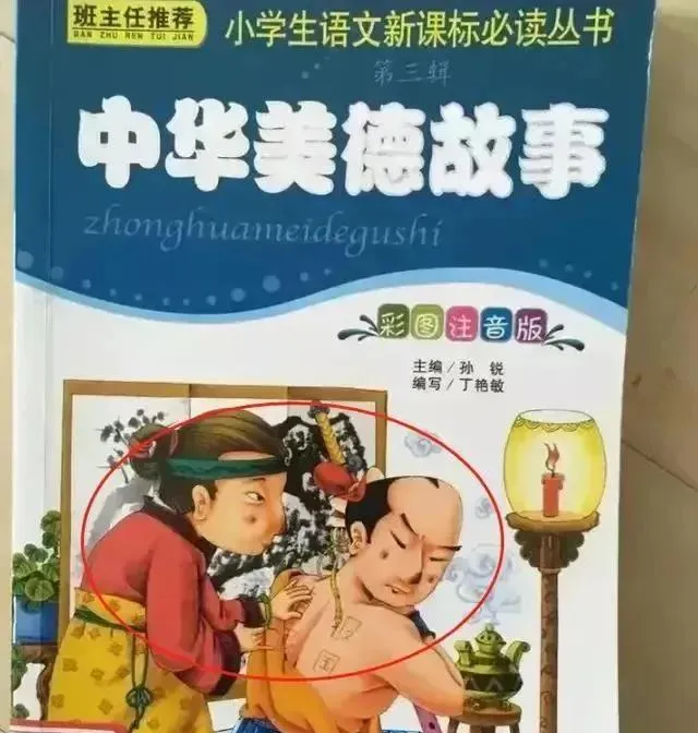图中这本叫中华美德故事,蓝底子上几个大字顶得挺硬,下面一圈彩画还带着灯,小时候就爱盯着那盏灯看,觉得像谁家屋里点着煤油灯,桌上一坐就能听见翻页声,那会儿老师说得最多的是,回去把这篇读熟,明天上课抽背,我回家把书往炕上一摊,嘴里念得飞快,眼睛其实在偷看插画,奶奶端着碗从旁边过,瞅我一眼说,别光图快,字儿进不进脑子你自己知道,我那时候还嘴硬,说进了进了,结果第二天老师问一句我就卡壳,脸一下热到耳朵根。