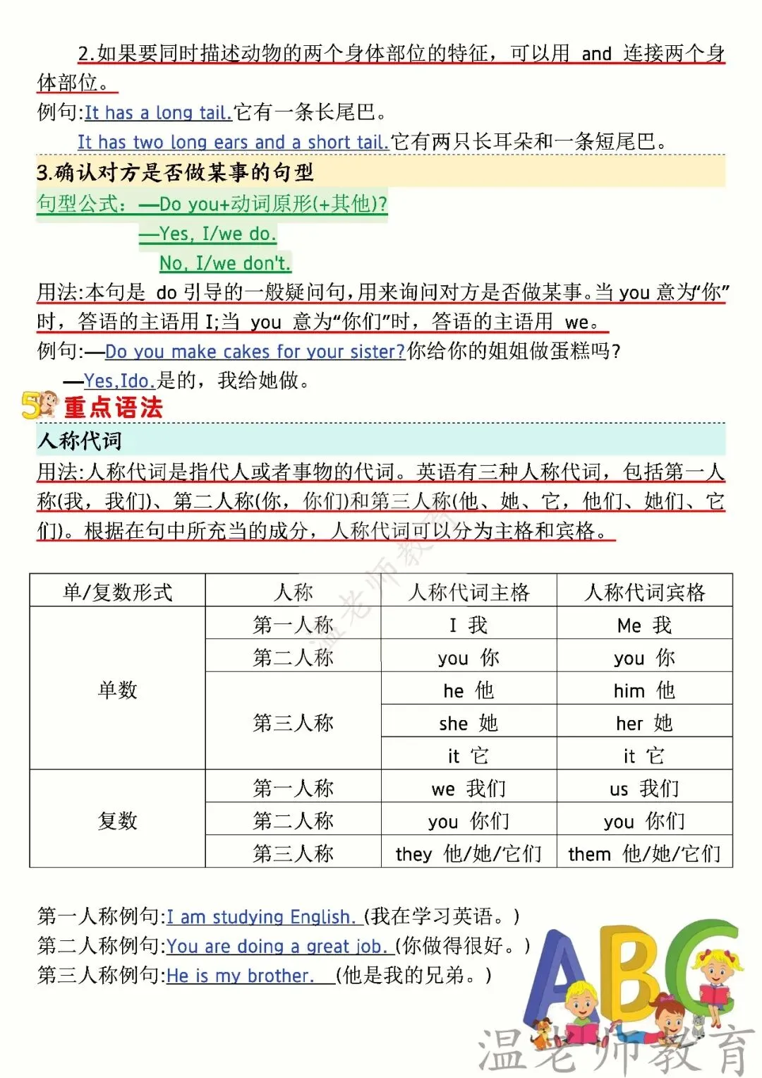 三年级下册英语人教版期中单元必背知识,电子版可打印