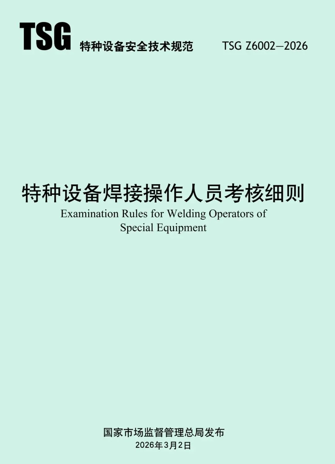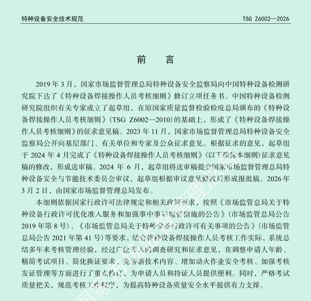 可下载 | TSG Z6002-2026 特种设备焊接操作人员考核细则