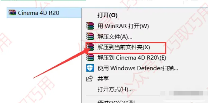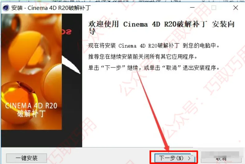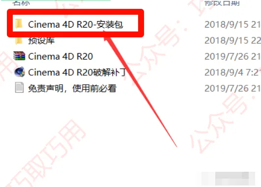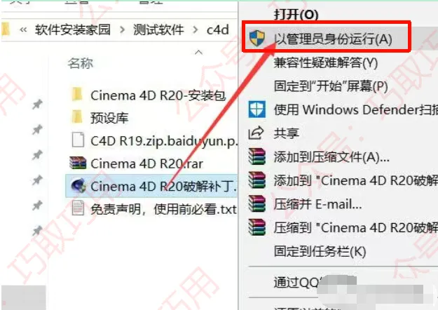 第十三步:打开解压的软件选中Cinema4D R20破解补丁.exe右键以管理员方式运行