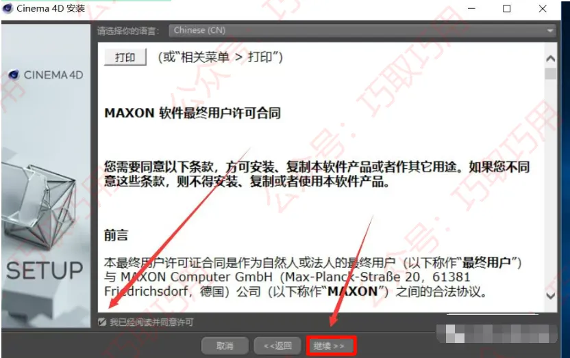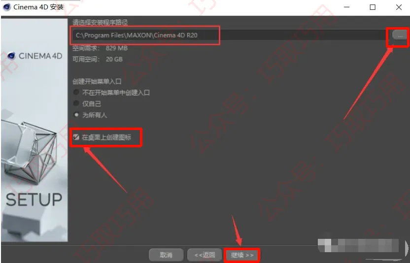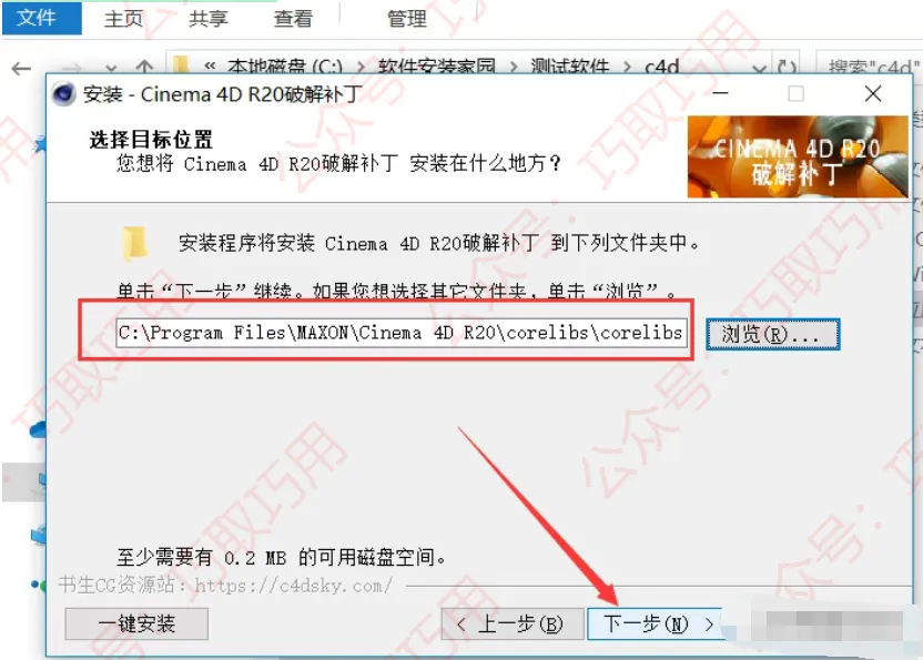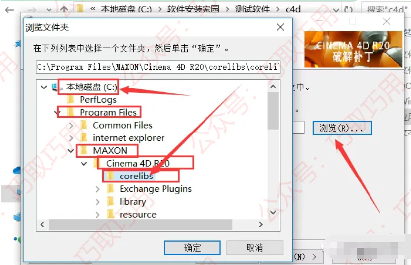 第十五步:点击浏览找到并选中软件安装目录下的corelibs文件夹小编的是默认安装的在C:\ProgramFiles\MAXON\Cinema 4D R20(第十步的安装路径下)